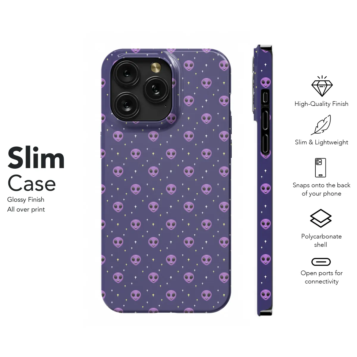 Blast off into style with this adorable extraterrestrial design! Featuring a charming repeating pattern of friendly purple aliens against a deep, starry night sky, this print adds a touch of otherworldly cuteness to your everyday carry. The subtle pastel purple aliens and tiny yellow stars create a whimsical, yet sophisticated look perfect for those who appreciate unique and playful aesthetics. This vibrant and cheerful design is guaranteed to turn heads and spark conversations wherever you go, expressing your individuality and love for all things cosmic. Its high-quality print ensures the colors remain vibrant and the details crisp, for long-lasting enjoyment. This design transcends trends and appeals to lovers of quirky patterns, space exploration, and cute alien imagery; making it a perfect gift for yourself or the extraterrestrial enthusiast in your life. Showcase your personality with this fun, cosmically inspired accessory that's out of this world! This design is perfect for adding a unique and stylish touch to your personal belongings. It's durable and easy to apply, making it a fantastic choice for adding a pop of color and character to your daily routine. Get yours today and embrace your inner alien!