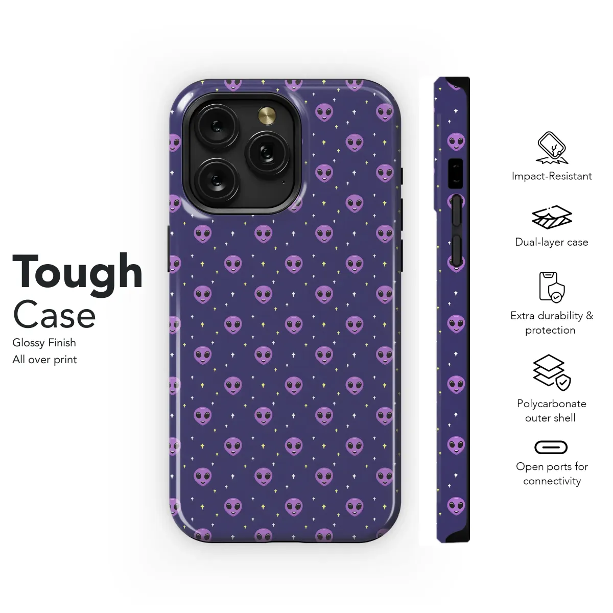 Blast off into style with this adorable extraterrestrial design! Featuring a charming repeating pattern of friendly purple aliens against a deep, starry night sky, this print adds a touch of otherworldly cuteness to your everyday carry. The subtle pastel purple aliens and tiny yellow stars create a whimsical, yet sophisticated look perfect for those who appreciate unique and playful aesthetics. This vibrant and cheerful design is guaranteed to turn heads and spark conversations wherever you go, expressing your individuality and love for all things cosmic. Its high-quality print ensures the colors remain vibrant and the details crisp, for long-lasting enjoyment. This design transcends trends and appeals to lovers of quirky patterns, space exploration, and cute alien imagery; making it a perfect gift for yourself or the extraterrestrial enthusiast in your life. Showcase your personality with this fun, cosmically inspired accessory that's out of this world! This design is perfect for adding a unique and stylish touch to your personal belongings. It's durable and easy to apply, making it a fantastic choice for adding a pop of color and character to your daily routine. Get yours today and embrace your inner alien!