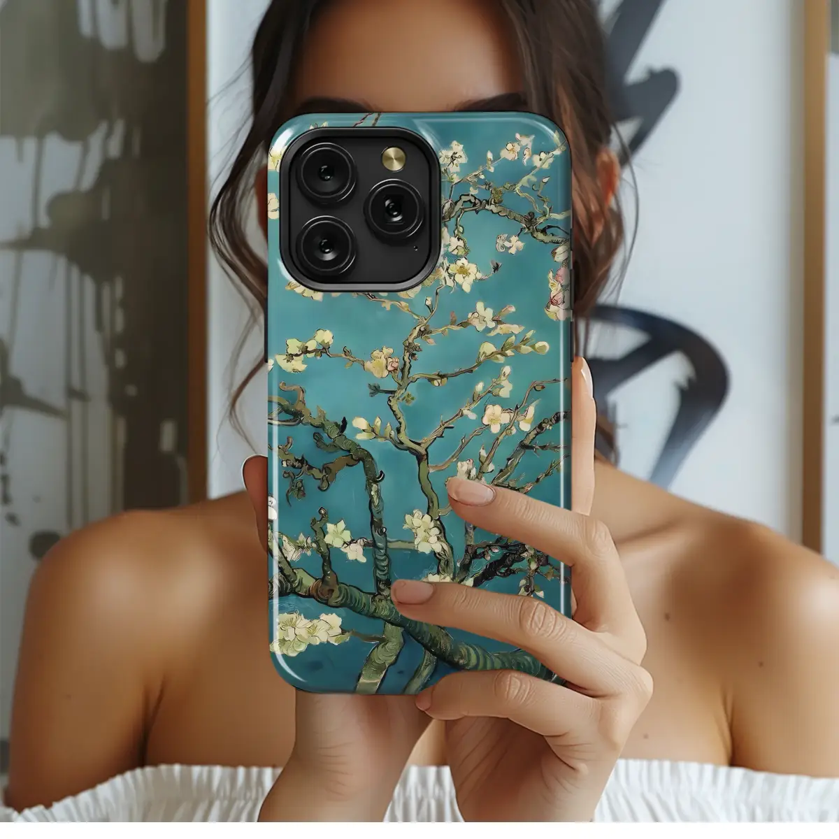 Elevate your style with this exquisite artistic print, showcasing the vibrant beauty of blossoming branches against a rich teal backdrop. Inspired by classic Impressionism, this design captures the delicate details of each petal and the expressive strokes of the original masterpiece. The captivating interplay of color and texture will transform your accessory into a unique statement piece, reflecting your appreciation for art and refined aesthetics. This high-quality reproduction ensures vivid colors and sharp details that will last, making it a perfect gift for art lovers or a stylish treat for yourself. Protect your device in timeless elegance with this beautiful and durable design. The design's versatility makes it perfect for everyday use, while its artistic appeal makes it a conversation starter. Add a touch of artistic flair to your personal style and express your individuality with this stunning piece. This one-of-a-kind design is sure to bring a touch of artistic charm wherever you go. It's the perfect blend of art, style, and protection, allowing you to carry a piece of beauty with you always.