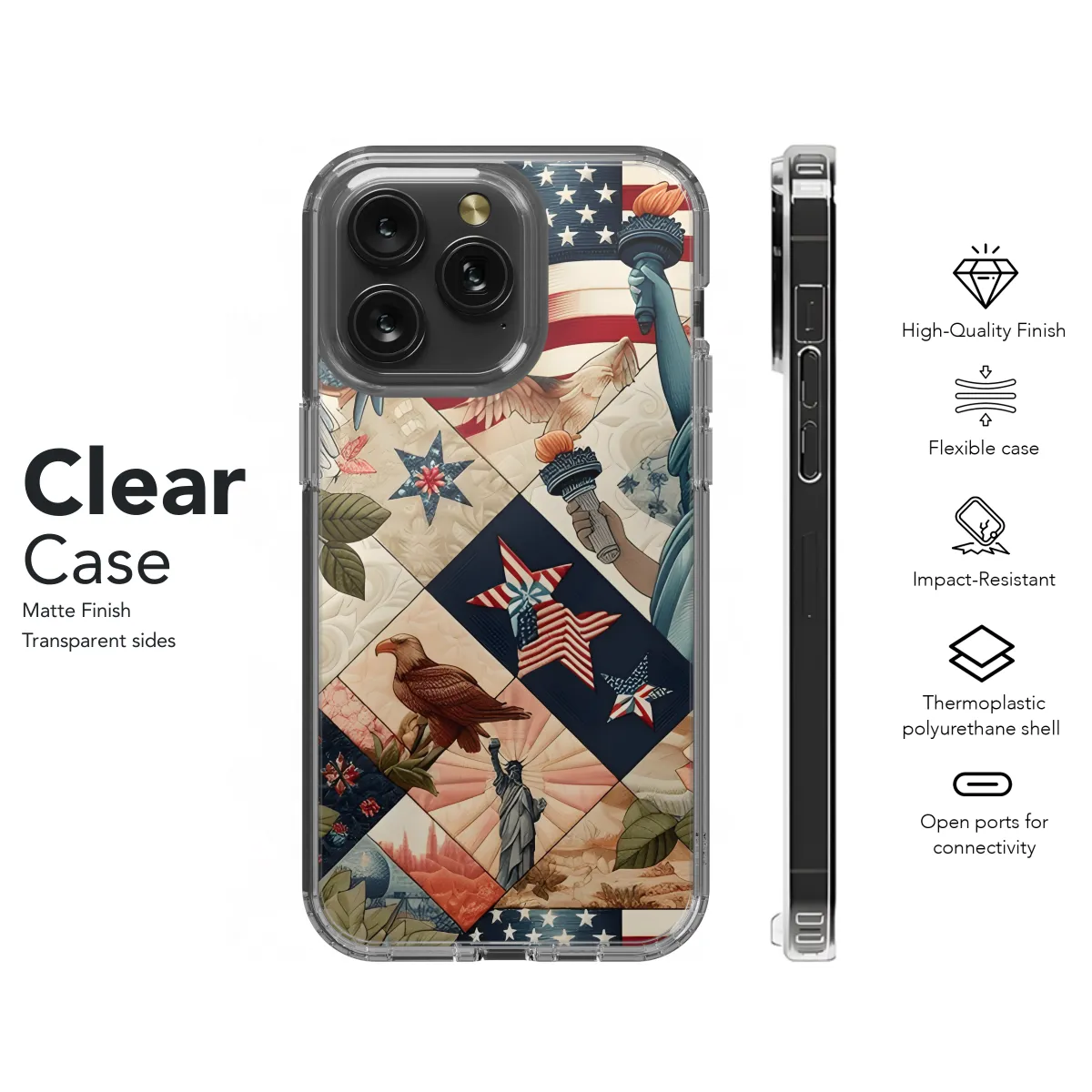 **American Phone Case: Protection for Your Precious Device** Shield your iPhone, Samsung, or Pixel smartphone from everyday wear and tear with our American-made phone case. Crafted from durable materials, it offers exceptional protection against scratches, bumps, and accidental drops. * Compatible with iPhone, Samsung, and Pixel devices * Durable construction for long-lasting protection * Precise cutouts for easy access to ports and buttons * Sleek and stylish design to complement your phone * Made right in the USA for quality and craftsmanship