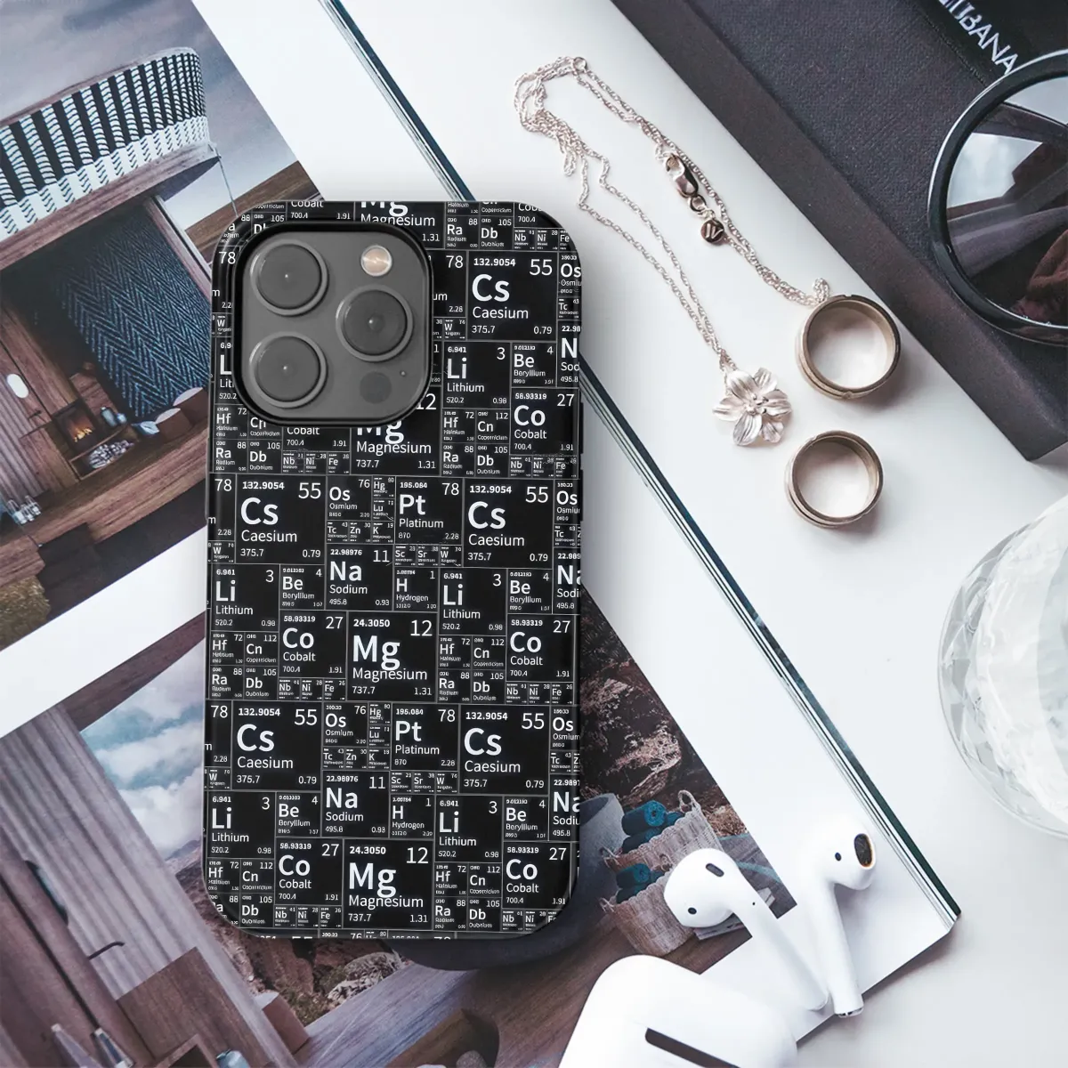 Unleash your inner scientist and wrap your favorite tech in the very elements that make up the universe! This striking periodic table design is for the curious mind, the lifelong learner, and the unapologetic geek. A mesmerizing collage of chemical symbols, from Hydrogen to Platinum, is beautifully rendered in crisp white typography against a deep, dramatic black background, creating a sophisticated and intellectual look that feels both modern and timeless. Perfect for the chemistry lover, the dedicated science teacher, or the brilliant student, this stylish armor turns your device into a statement of your passion. Embrace the dark academia aesthetic and let this sleek, monochrome grid become a durable and artistic second skin for your most-used accessory, with a smooth matte finish that feels great in your hand. It’s more than just a cool pattern; it’s a conversation starter, a subtle nod to your love for STEM, and a way to carry a piece of scientific art with you everywhere. This unique design makes an unforgettable graduation gift for a future scientist, a thoughtful present for a mentor, a smart back-to-school essential, or the ultimate nerdy gift for the brilliant mind in your life. Get in your element and let your smarts shine with this minimalist, academic-inspired masterpiece.