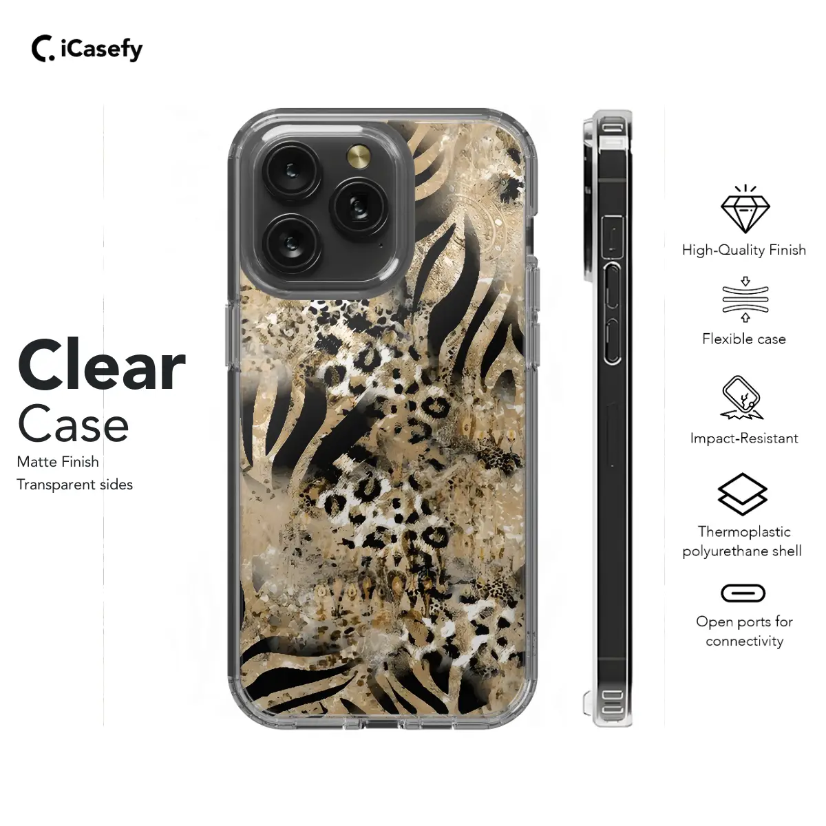Unleash your wild side with our captivating Animal Print Phone Case! Emblazoned with an eye-catching zebra, tiger, leopard, or faux snake skin print, this case transforms your device into a sleek and stylish accessory. Its slim profile provides protection without compromising on comfort, while the vibrant print adds a touch of primal flair to any ensemble. Whether you're a fashionista or an animal lover, this phone case is the perfect way to express your individuality.
