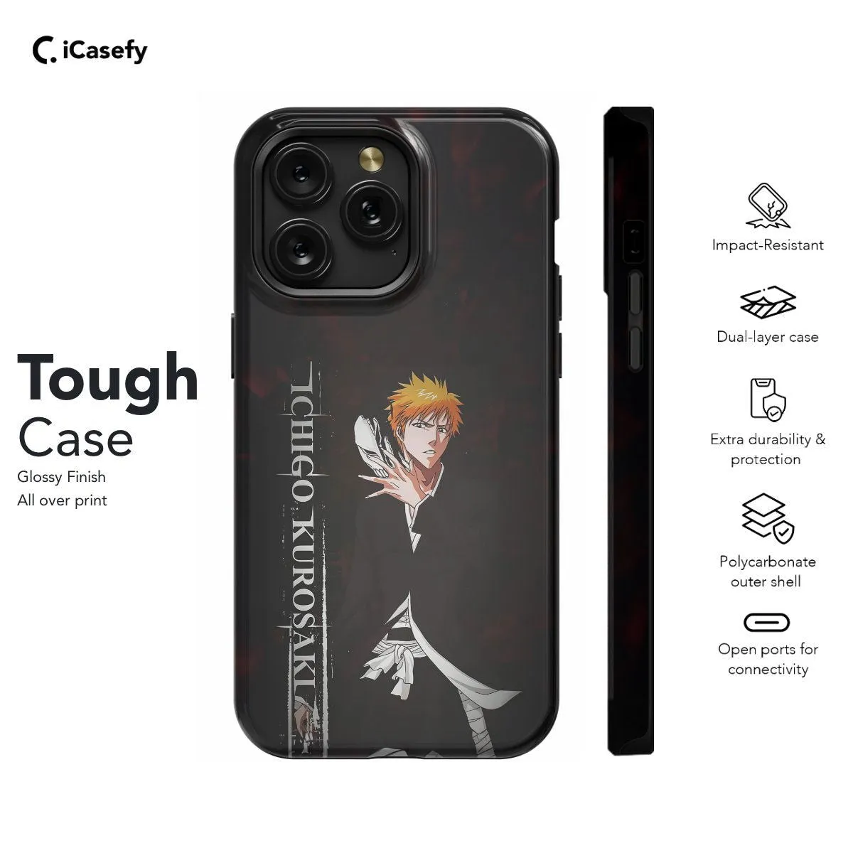 Unleash your Soul Reaper spirit with our Anime Bleach Ichigo Kurosaki Phone Case. Featuring the iconic character Ichigo Kurosaki from the hit anime Bleach, this case embodies bravery and determination. Crafted for both style and protection, it safeguards your phone while showcasing your love for the series. With precise cutouts for ports and buttons, it ensures seamless functionality. Elevate your phone's look and channel your inner Soul Reaper with our Ichigo Kurosaki Phone Case today!