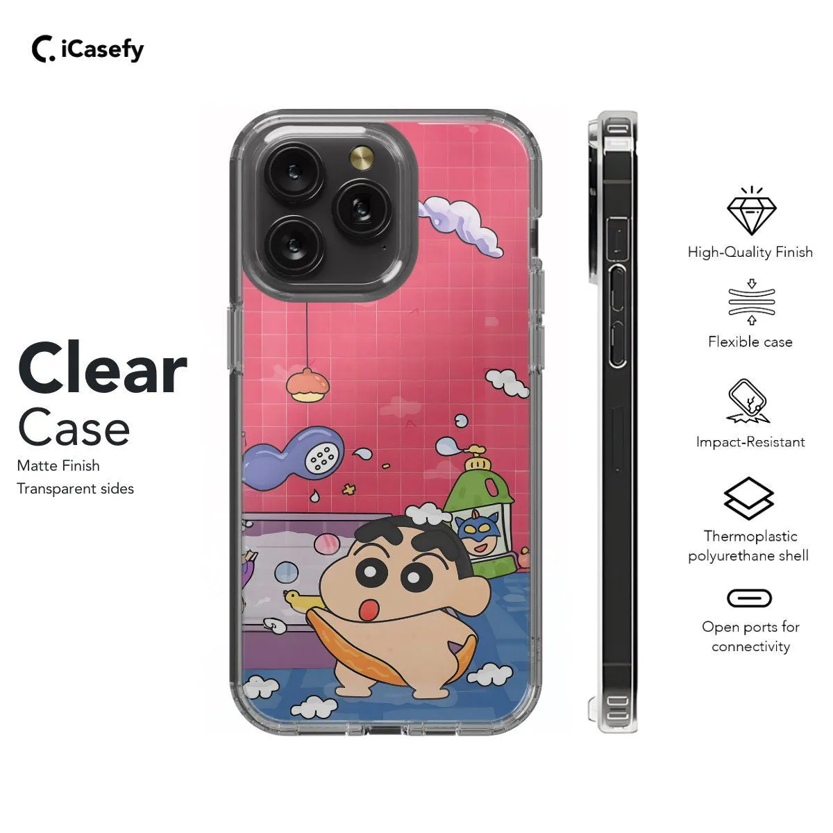 Immerse yourself in the whimsical world of Crayon Shin-chan with this delightful phone case featuring iconic characters and playful scenes from the beloved anime series. Carry a touch of Shin-chan's mischievous charm with you wherever you go, letting your device become a canvas for the colorful and hilarious adventures of this beloved character.