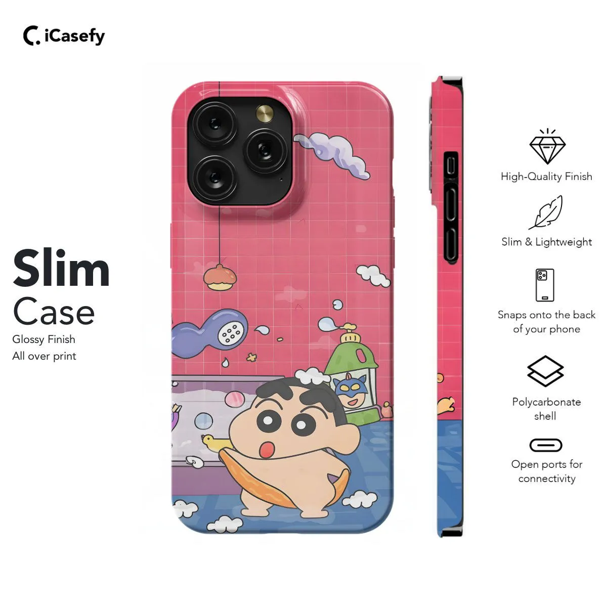 Immerse yourself in the whimsical world of Crayon Shin-chan with this delightful phone case featuring iconic characters and playful scenes from the beloved anime series. Carry a touch of Shin-chan's mischievous charm with you wherever you go, letting your device become a canvas for the colorful and hilarious adventures of this beloved character.
