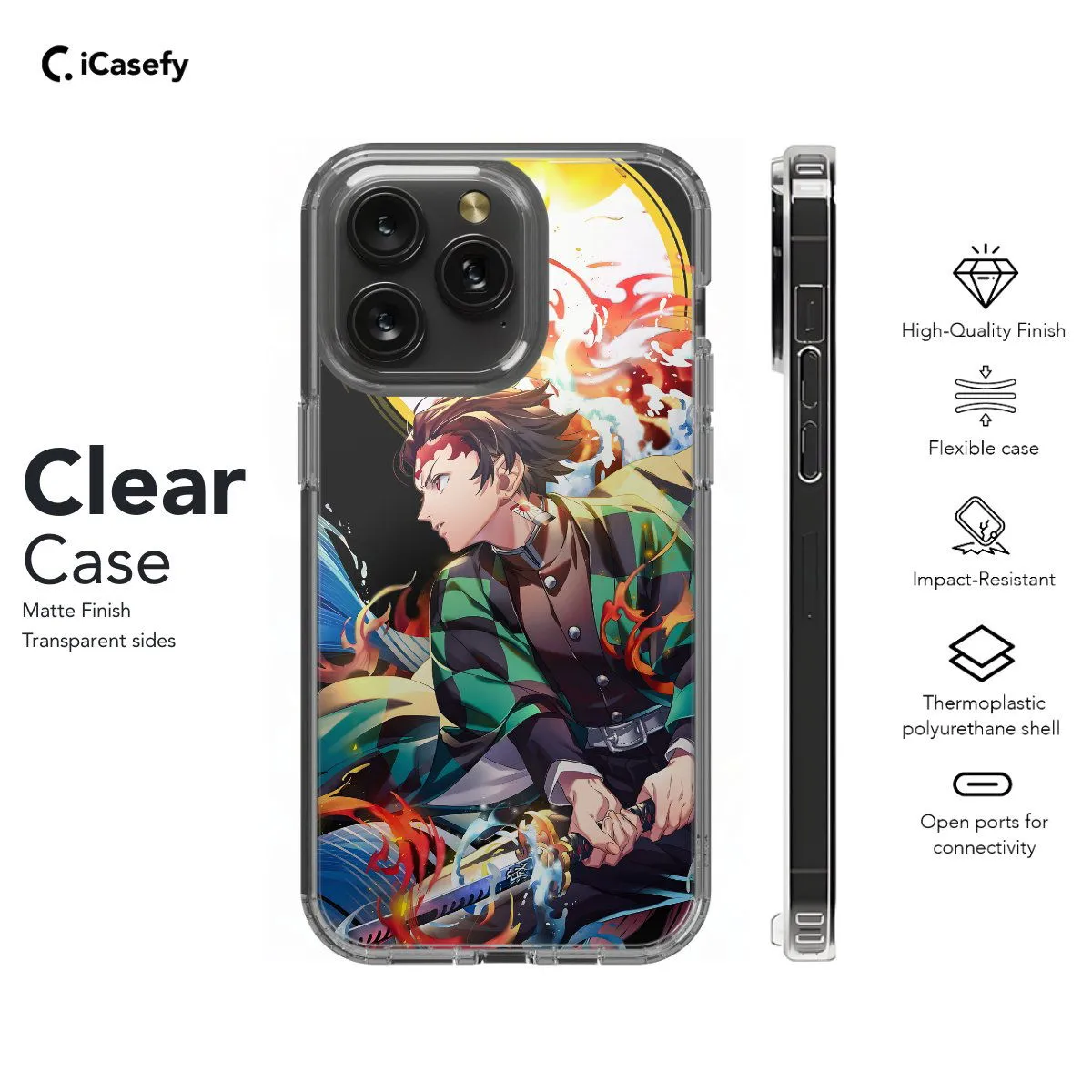 Immerse yourself in the world of Demon Slayer with this captivating phone case inspired by the hit anime series. Featuring iconic imagery from the show, this case is perfect for any fan of Demon Slayer. Let your phone become a canvas for the epic battles and emotional journeys of the series with this eye-catching accessory!