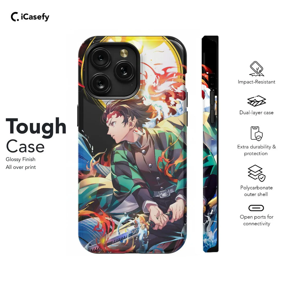Immerse yourself in the world of Demon Slayer with this captivating phone case inspired by the hit anime series. Featuring iconic imagery from the show, this case is perfect for any fan of Demon Slayer. Let your phone become a canvas for the epic battles and emotional journeys of the series with this eye-catching accessory!