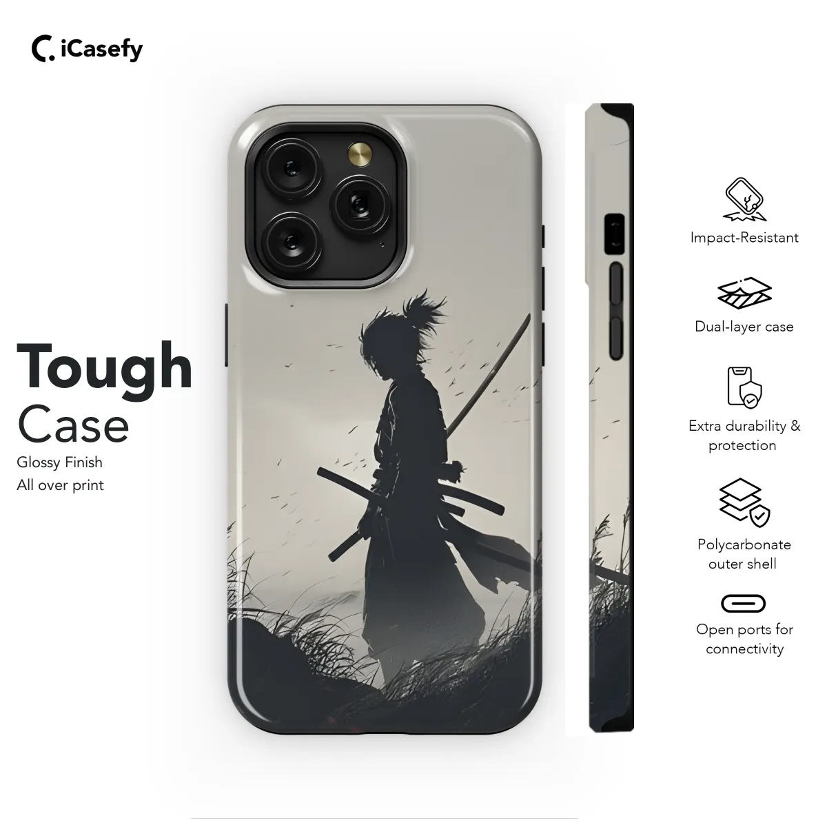 Protect your smartphone with style and flair using our Anime Samurai Phone Case. Featuring iconic samurai designs, this case showcases your love for Japanese culture and combat. Its durable construction shields your phone from scratches, drops, and everyday wear and tear. Compatible with various iPhone, Samsung, and Pixel models, this case offers a perfect fit, ensuring easy access to all buttons and ports. Embrace the spirit of a samurai and keep your phone safeguarded with this exceptional phone case.