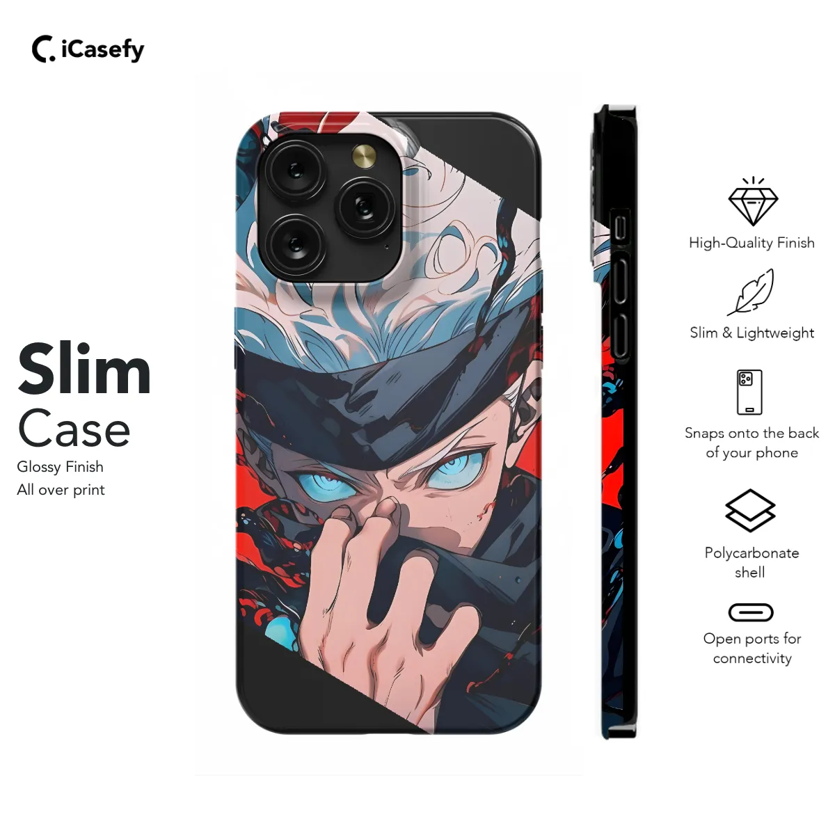 Accessorize your phone with a touch of anime style! Our Anime Satoru Phone Case is available for a wide range of iPhone, Samsung, and Pixel models. Its vibrant design featuring the iconic character Satoru will make your phone stand out from the crowd. Protect your device in style with this high-quality and durable case that offers easy access to all buttons and ports.