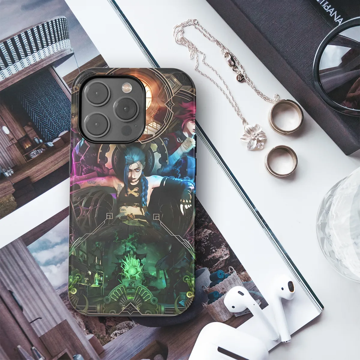 Take your love of Arcane with you wherever you go with our exclusive Throne Jinx phone case! Available for iPhone, Samsung, and Pixel, this stylish cover features a bold design inspired by the fierce and enigmatic character. Its durable construction protects your phone from bumps and scratches, while its sleek finish adds a touch of flair to your everyday carry. Embrace the chaos of Zaun with our Arcane Jinx Throne phone case, a must-have for any fan of the hit Netflix series.