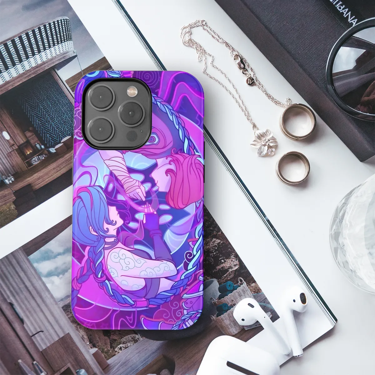 Immerse yourself in the enchanting embrace of arcane sisters with this captivating phone case. Designed to adorn your iPhone, Samsung, or Pixel, this ethereal accessory shields your device while enhancing its beauty. Its intricate design evokes the mystical bond between sisters, embodying the power of unity and the allure of the unknown. Let the arcane sisters be your constant companions, whispering secrets and guarding your phone from harm.
