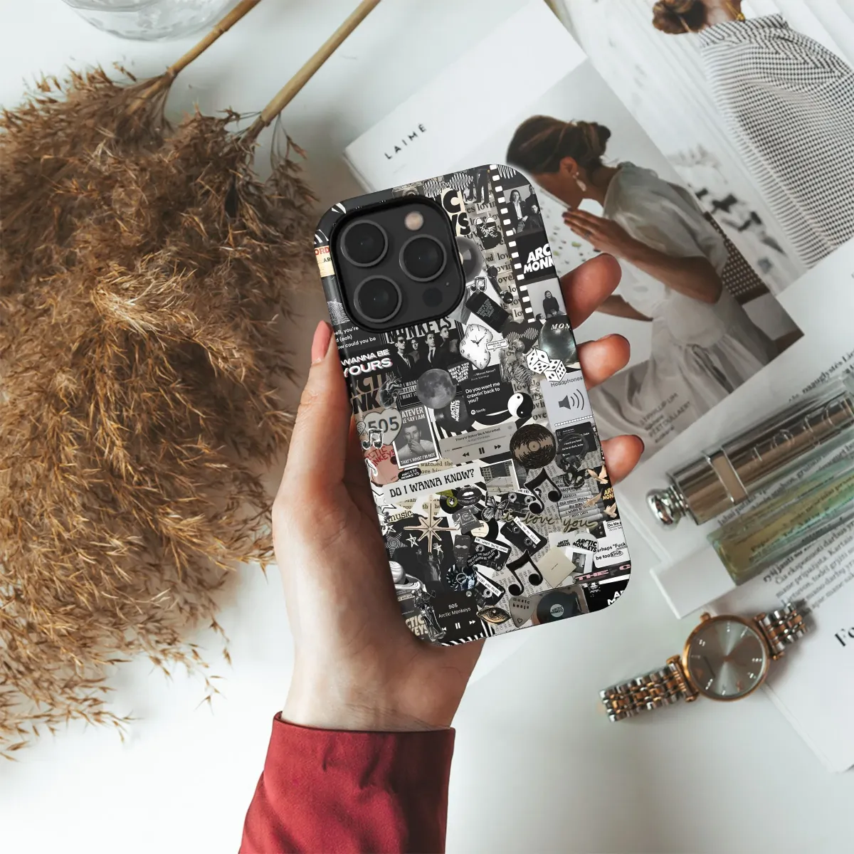 Show your love for the Arctic Monkeys with this stylish collage phone case! Features iconic imagery, perfect for iPhone, Samsung, and Pixel phones (specify model when ordering).