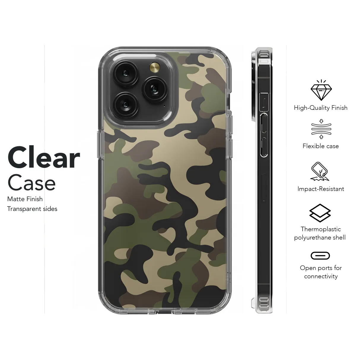 Protect your phone in style with our Army Camo Print Pattern Phone Case. This case is made from durable TPU material to shield your phone from bumps, drops, and scratches. The army camo print adds a touch of military-inspired fashion to your device. Compatible with iPhone, Samsung, and Pixel models, this case offers a snug fit and easy access to all ports and buttons.