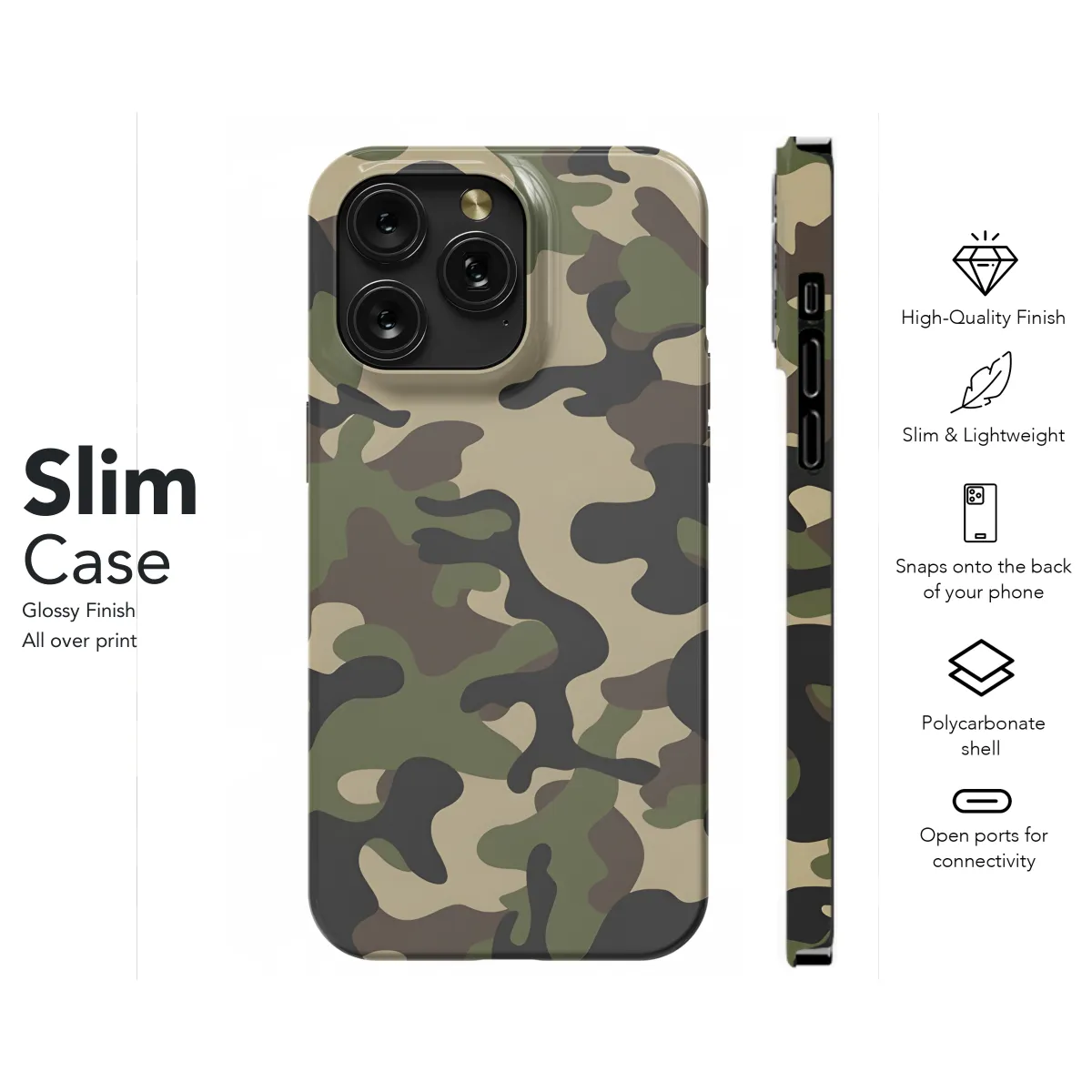 Protect your phone in style with our Army Camo Print Pattern Phone Case. This case is made from durable TPU material to shield your phone from bumps, drops, and scratches. The army camo print adds a touch of military-inspired fashion to your device. Compatible with iPhone, Samsung, and Pixel models, this case offers a snug fit and easy access to all ports and buttons.
