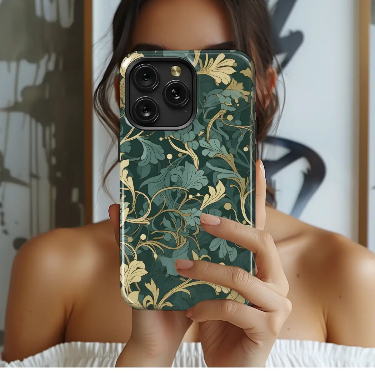 Elevate your style with this exquisite Art Nouveau-inspired design. The intricate, flowing lines and delicate teal and gold foliage create a luxurious and sophisticated aesthetic. This timeless pattern is perfect for adding a touch of elegance to your everyday life, transforming a simple accessory into a statement piece. The rich jewel-toned colors complement a variety of outfits and personalities, making it a versatile choice. Printed with vibrant, high-quality inks on a durable material, this design ensures lasting beauty and protection. This design speaks volumes without saying a word, a perfect blend of classic artistry and modern sensibilities. Its intricate details and captivating color palette are sure to draw admiring glances. Showcase your unique sense of style with this captivating and unforgettable artwork. A perfect gift for yourself or someone who appreciates beauty and artistry. Transform your accessory into a work of art and experience the allure of Art Nouveau elegance. This piece is a celebration of beauty and sophistication, an embodiment of artistic excellence for a truly stylish accessory. Bring the artistry of a bygone era into your contemporary life with this breathtaking design.