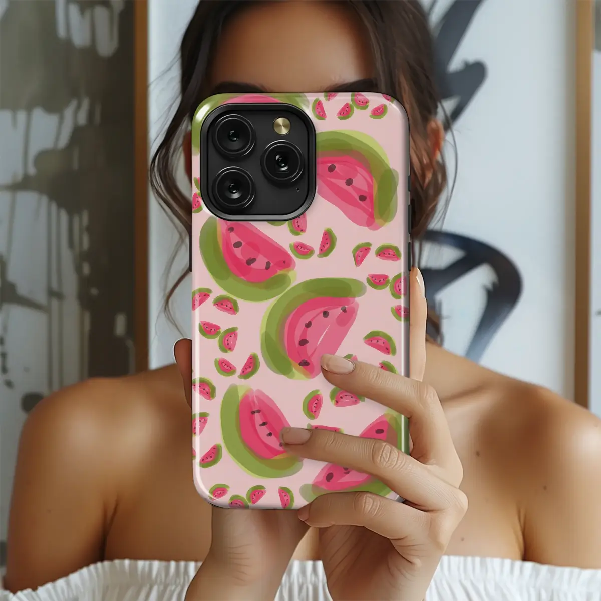 Embrace a playful summer vibe with this vibrant watercolor watermelon design. Featuring an artistic, painterly pattern of juicy watermelon slices scattered across a soft pink background, this accessory captures a fun and fruity aesthetic perfect for brightening your day.