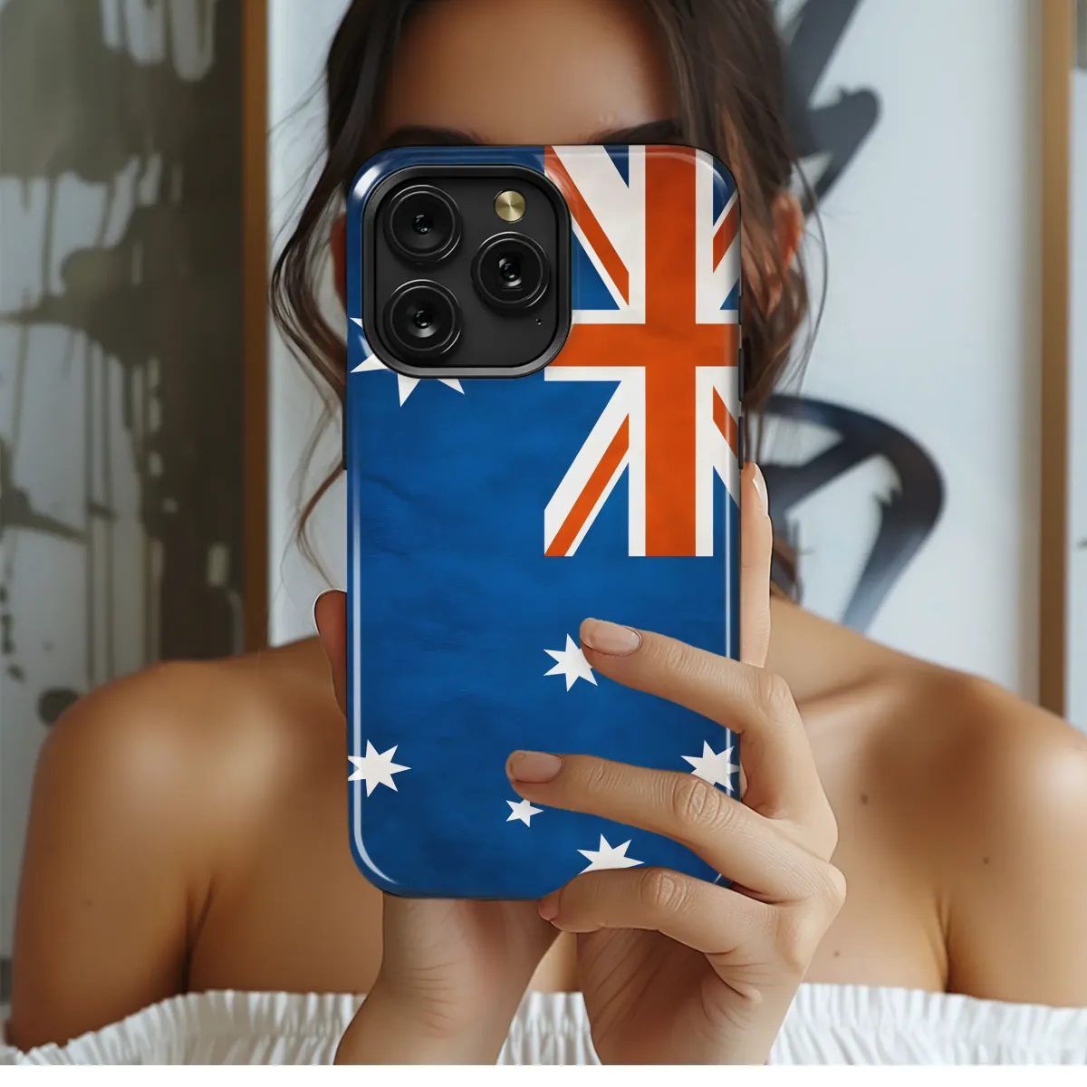 Show your Aussie pride with this stylish design featuring a textured, vintage-inspired Australian flag. The bold blue background is accented by crisp white stars and a vibrant Union Jack, creating a striking and patriotic aesthetic. This unique design adds a touch of national identity to your personal accessory, making it a perfect conversation starter and a symbol of your national heritage. The high-quality print ensures vibrant colors and lasting durability, protecting your device from everyday wear and tear. This eye-catching design is a must-have for any true-blue Aussie, offering a unique blend of classic symbolism and modern design. It's the perfect gift for yourself or any Australian-loving friend or family member, making a proud statement wherever you go. Celebrate your Australian identity with this beautiful and practical design that combines patriotism and modern style. Order yours today and proudly display your national pride! #AustralianFlag #Australia #Aussie #Patriotic #NationalPride #VintageFlag #UniqueDesign #GiftIdeas #SupportAustralia #NationalSymbol