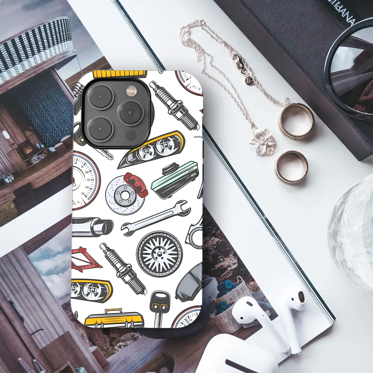Gear up your device with this awesome automotive-themed design! Perfect for mechanics, car enthusiasts, or anyone who loves the thrill of the open road, this vibrant pattern features a cool collection of auto parts. From pistons and wrenches to tires and spark plugs, every detail is meticulously crafted in a retro, cartoon style. Show off your passion for cars and engines with this unique, eye-catching print. It's a great gift for him, a unique present for dads, or a treat for yourself. Whether you're into classic cars, racing, or simply appreciate the beauty of mechanical design, this automotive art is sure to turn heads. Get your hands on this original design today and showcase your love for all things automotive! Let everyone know you love cars, trucks, auto repair and customization.