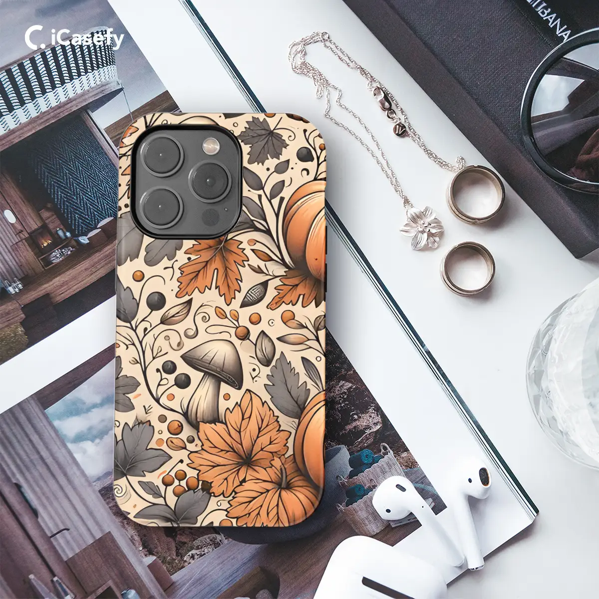 Show off your love for autumn with this charming phone case featuring hand-drawn illustrations of mushrooms, pumpkins, and autumn leaves. The vibrant colors and intricate details capture the essence of the fall season, adding a touch of seasonal flair to your device. Whether you're exploring nature, sipping pumpkin spice lattes, or cozying up by the fireplace, this phone case will keep your device protected while embracing the magic of autumn.