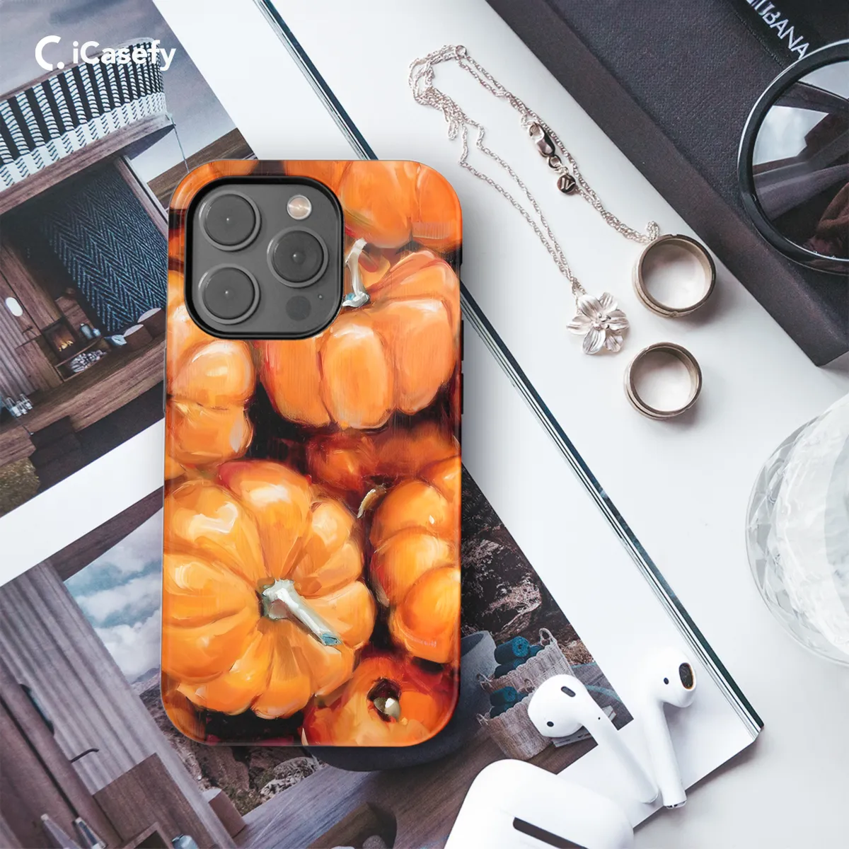 Welcome autumn with this charming phone case featuring a vibrant pumpkin design against a warm fall backdrop. Protect your device in style as you embrace the beauty of the season. Available for iPhone, Samsung, and Pixel models, this case offers a cozy touch to your everyday essentials.