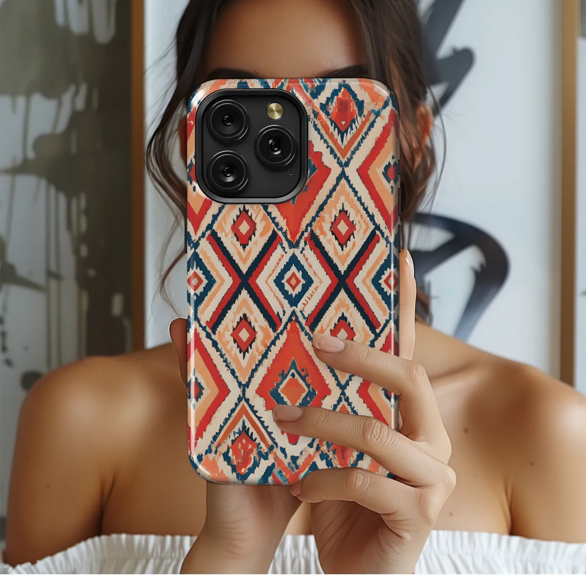 Elevate your phone's style with this captivating Aztec Rhombus Blouse Phone Case. Featuring an intricate geometric pattern inspired by traditional Aztec textiles, it adds a touch of ethnic elegance to your daily tech companion. Choose from a range of compatible models for your iPhone, Samsung, or Pixel device, ensuring a snug fit and optimal protection.