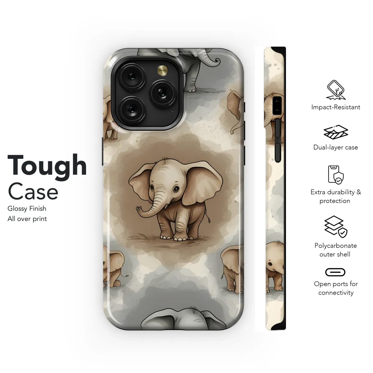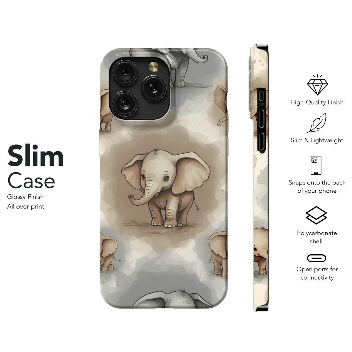 This adorable baby elephant phone case is the perfect way to protect your phone while adding a touch of fun and personality. The case is made of a durable material that will protect your phone from scratches and bumps, and the raised edges will help to protect your screen from damage. The baby elephant design is sure to put a smile on your face every time you use your phone.