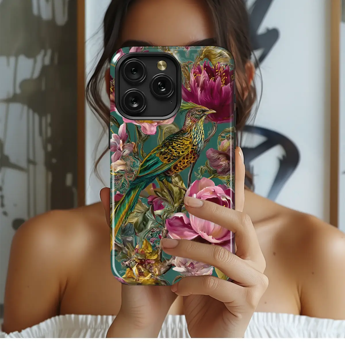 Lose yourself in an enchanted, moonlit garden every time you reach for your most-used essential. This isn't just a design; it's a wearable masterpiece, a piece of portable art that wraps your device in a story of opulent nature. A magnificent, jewel-toned bird, with plumage of shimmering emerald, gold, and sapphire, perches regally amidst a lavish explosion of painterly peonies and other lush florals. Every petal, rendered in dramatic strokes from deep magenta to delicate blush pink, seems to glow with an inner light against the moody, emerald green backdrop, reminiscent of a forgotten tapestry or a priceless Chinoiserie screen. The entire scene captures the dramatic elegance and rich detail of a Baroque oil painting, transforming your tech into a sophisticated statement. This dark floral accessory is the perfect artistic shield for the romantic dreamer, the art history lover, or anyone who craves a touch of maximalist beauty in their daily life. Imagine the feeling of carrying a secret garden in your pocket. This vintage botanical illustration, with its moody floral aesthetic, makes an unforgettable and thoughtful gift for her, a unique piece for a birthday or just to show you care. Let this nature lover's dream adorn your most vital accessory and turn the mundane into the magical.