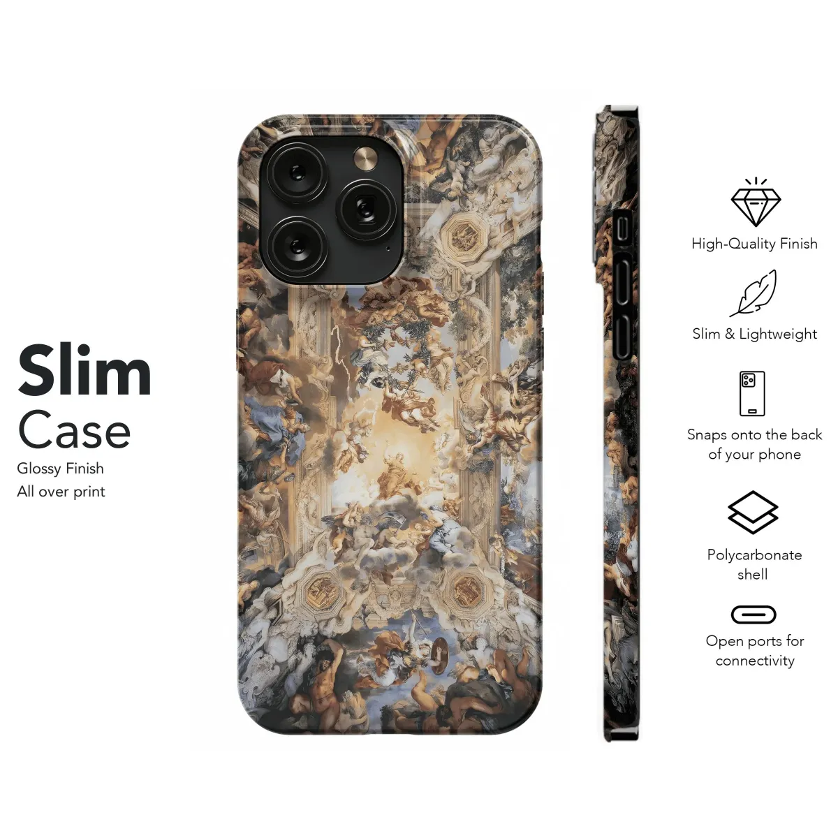 Embrace the grandeur of Baroque art with our exquisite phone case. Adorned with intricate ceiling frescoes, this case transforms your device into a portable masterpiece. Protect your phone in style while showcasing your refined taste in art and architecture.