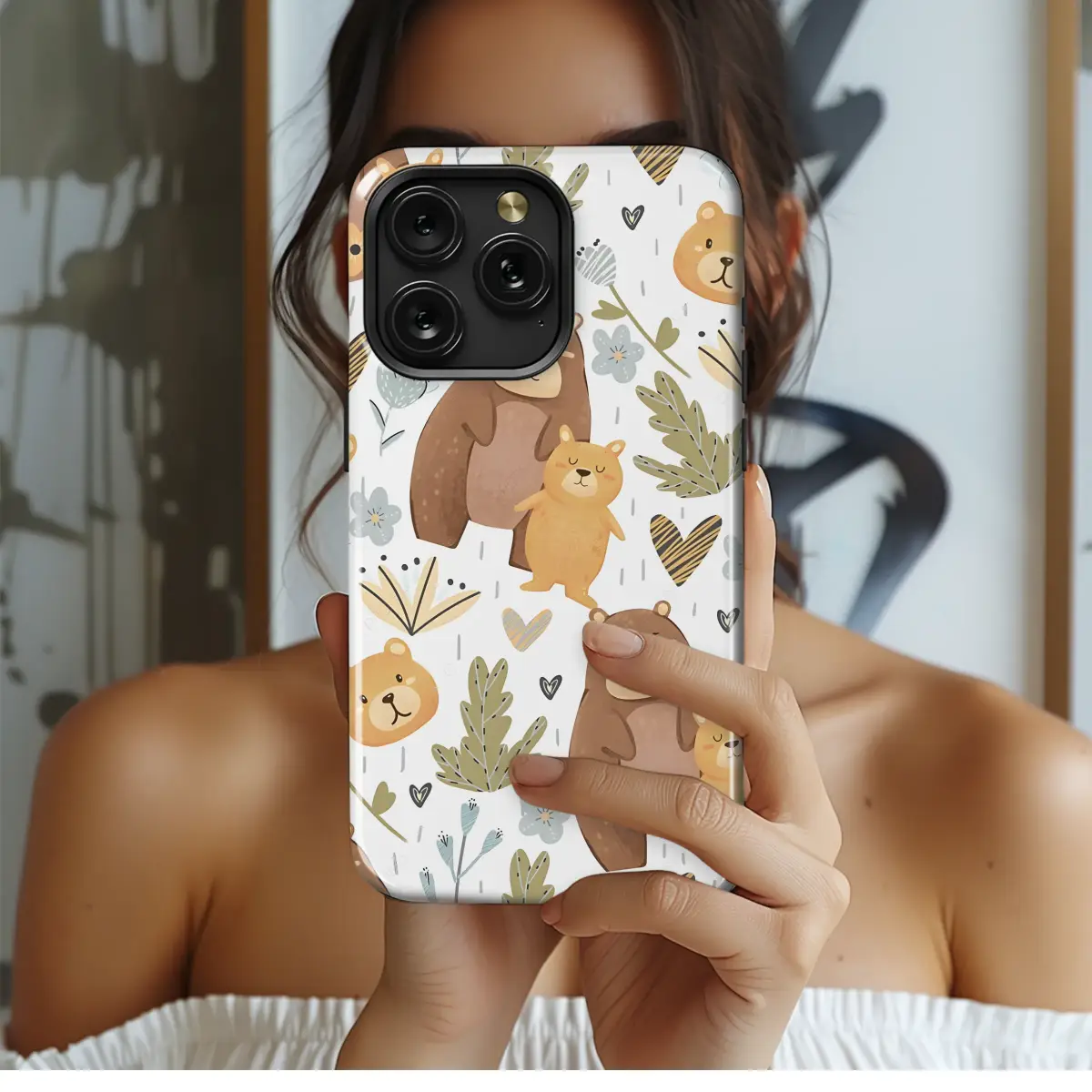 Wrap your most essential daily companion in the warmth of a woodland embrace with this enchanting Mama Bear and Cub design. This isn't just an accessory; it's a piece of pocket-sized art that tells a heartwarming story. Picture gentle, hand-drawn mama bears watching over their sweet, playful cubs as they wander through a field of delicate wildflowers and rustic, sage-green botanicals. Rendered in a soft, earthy color palette of cozy browns, honeyed yellows, and dusty blues, the whimsical pattern evokes the feeling of a cherished storybook, with tiny hand-drawn hearts sprinkled throughout to capture that extra bit of love. It’s the perfect aesthetic for anyone who adores cottagecore charm, boho vibes, or Scandi-inspired forest animal art. This beautiful design celebrates the fierce, tender bond of a mother's love, making it a thoughtful gift for a new mom, a touching baby shower present, or a sweet treat for yourself. Let this delightful artwork shield your tech in style, bringing a smile to your face and a touch of nature-inspired joy every time you reach for it. Carry a little love and comfort with you wherever you go.