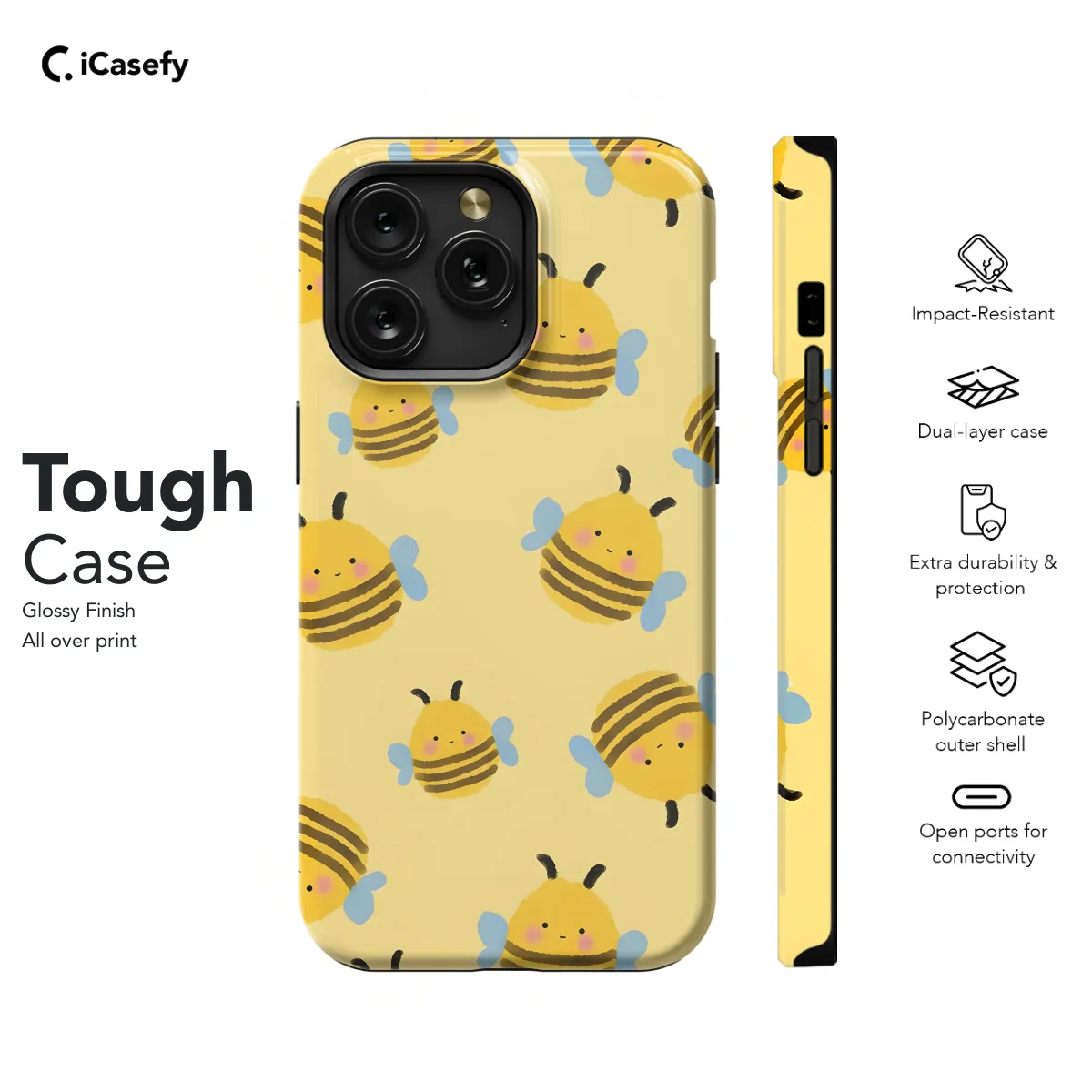 Protect your phone in style with our adorable bee phone case! Available for iPhone, Samsung, and Pixel models, this case features an eye-catching bee design that will buzz up your style. Its slim profile and shock-absorbent material keep your phone safe and looking its best. Whether you're a nature lover or just love a touch of whimsy, this bee phone case is a must-have accessory. Order yours today and make your phone the bee's knees!