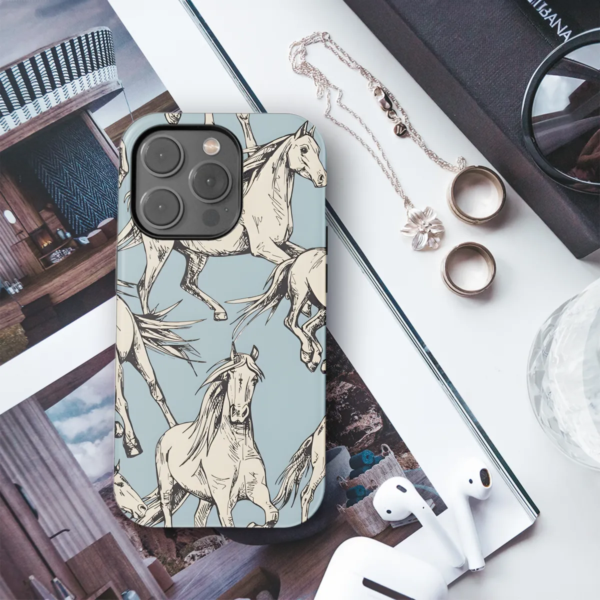 Protect your phone in style with our Beige Horses Blue Phone Case. This case is designed to fit iPhone, Samsung, and Pixel models and features a unique beige horse design on a blue background. The case is made of a durable material that will protect your phone from scratches, dents, and everyday wear and tear. The case also has a raised lip around the screen to protect it from damage.
