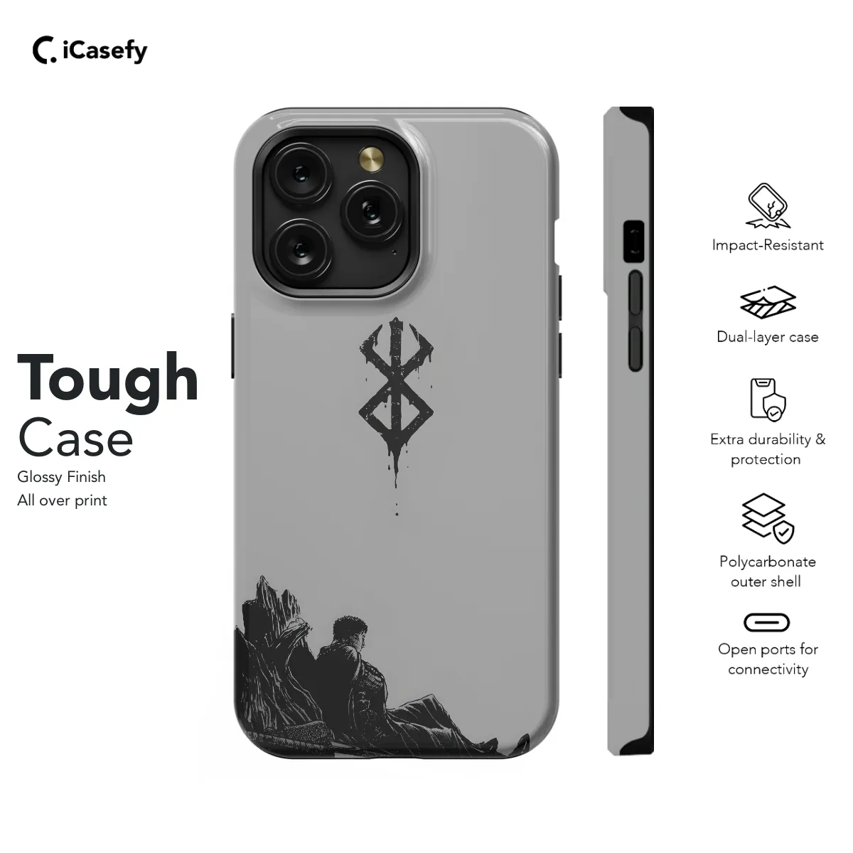 Protect your precious smartphone with our Berserk Phone Case, a fortress of protection against drops, scratches, and everyday wear and tear. Its rugged design ensures your device remains safe from life's inevitable mishaps. Experience the ultimate defense for your digital companion!