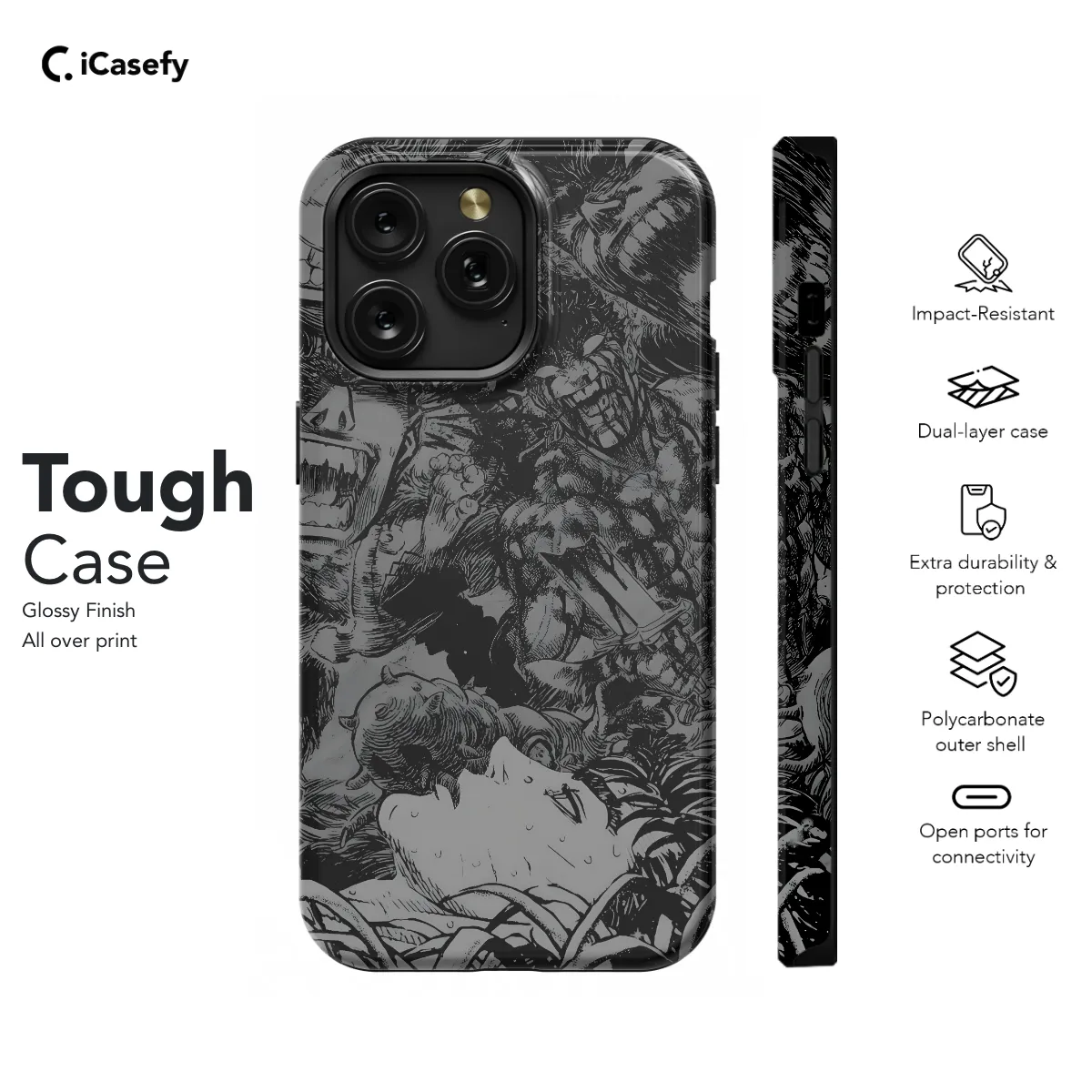 Lock in impenetrable protection for your smartphone with our Berserk Phone Case. Forged for iPhone, Samsung, and Pixel devices, this case is crafted from a formidable blend of materials, ensuring your device remains unscathed from daily impacts and mishaps. Its sleek design seamlessly complements your phone's aesthetics, while its grippy surface provides a secure hold. Embrace the ultimate guardian for your indispensable companion with the Berserk Phone Case.