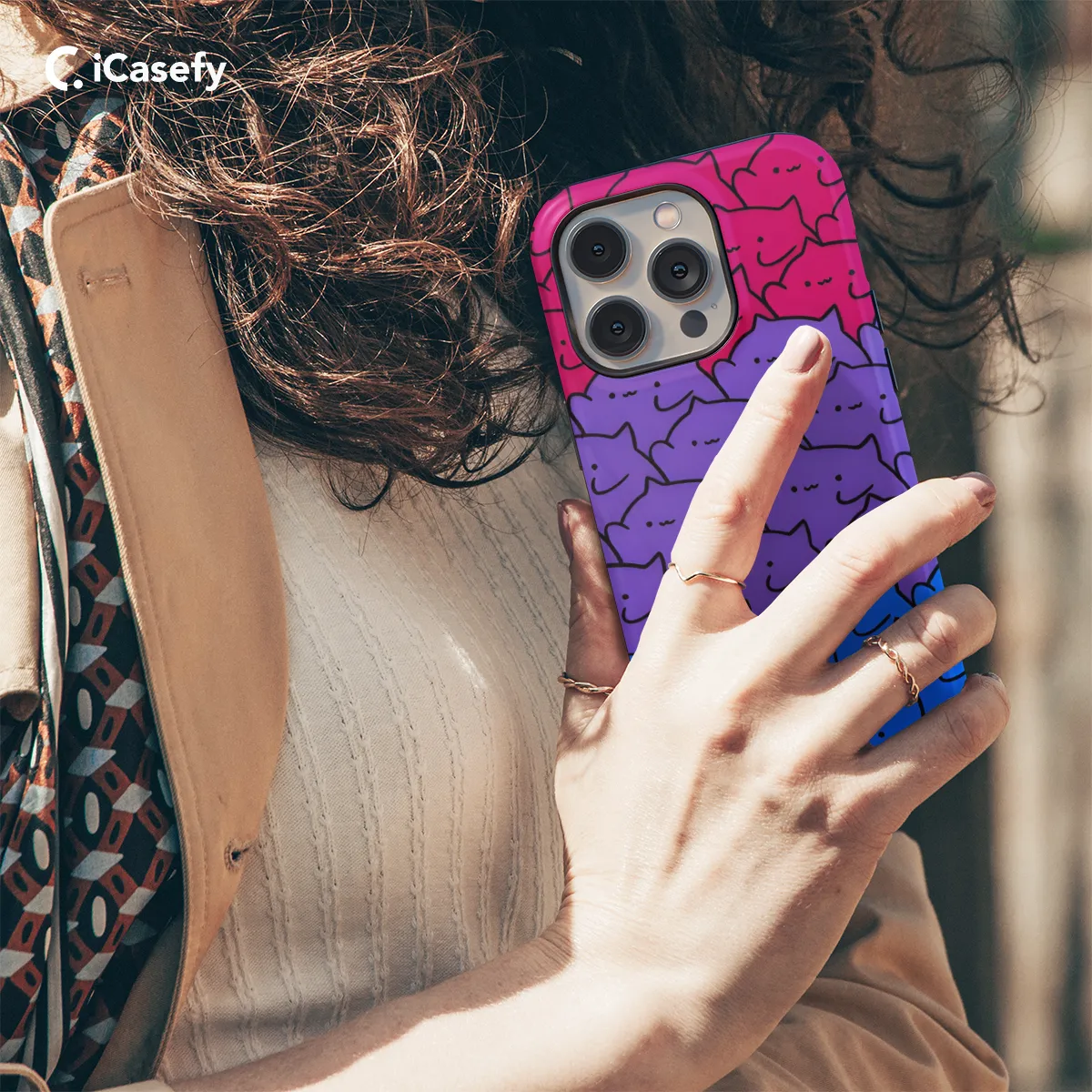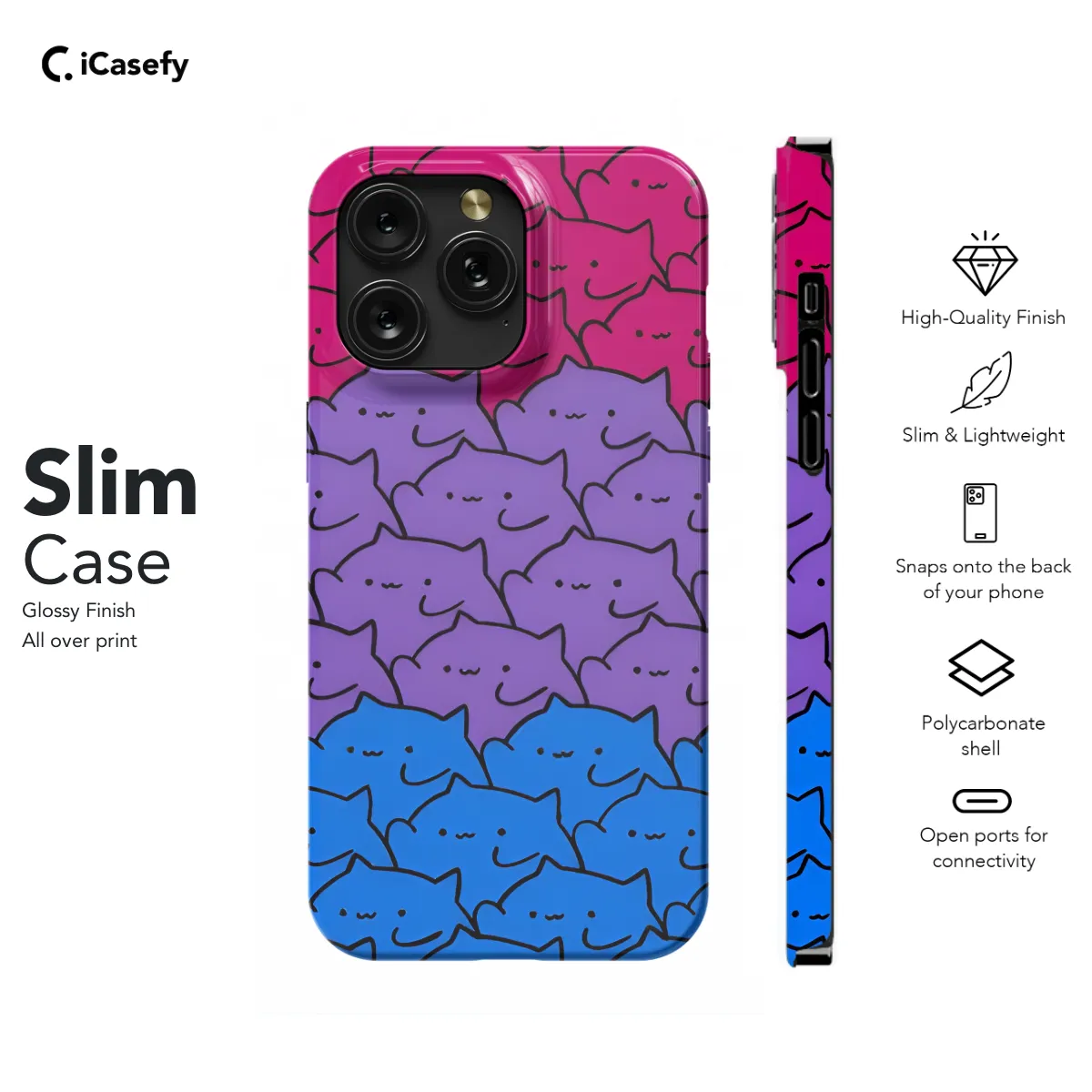 Celebrate your pride and show off your unique style with this eye-catching Bi Pride Cats phone case. Designed for iPhone, Samsung, and Pixel phones, this case is adorned with an adorable cast of bisexual cats, representing the diverse and vibrant community. The durable material protects your phone from scratches and bumps, while the vibrant colors and playful design add a touch of personality to your everyday tech companion. Whether you're at a Pride event or simply want to express your true self, this phone case is the purrfect way to do it.