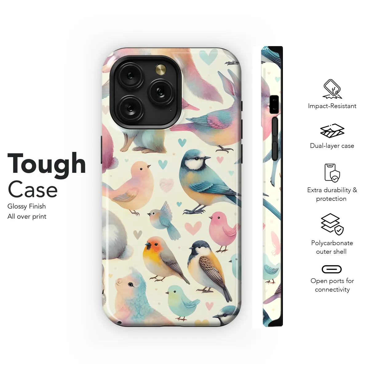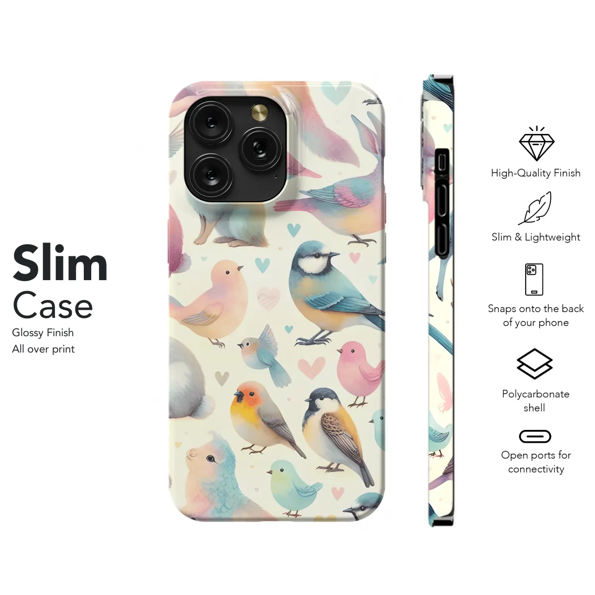 Protect your phone with our stylish and durable Birds Phone Case. Designed with intricate bird patterns, this case not only shields your device from scratches and bumps but also adds a touch of avian flair to your everyday carry. Compatible with various iPhone, Samsung, and Pixel models, this case ensures a perfect fit, while its slim profile allows for easy wireless charging.