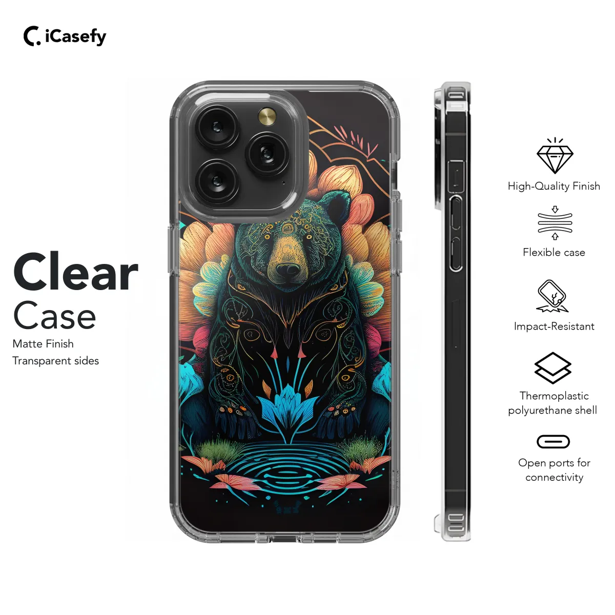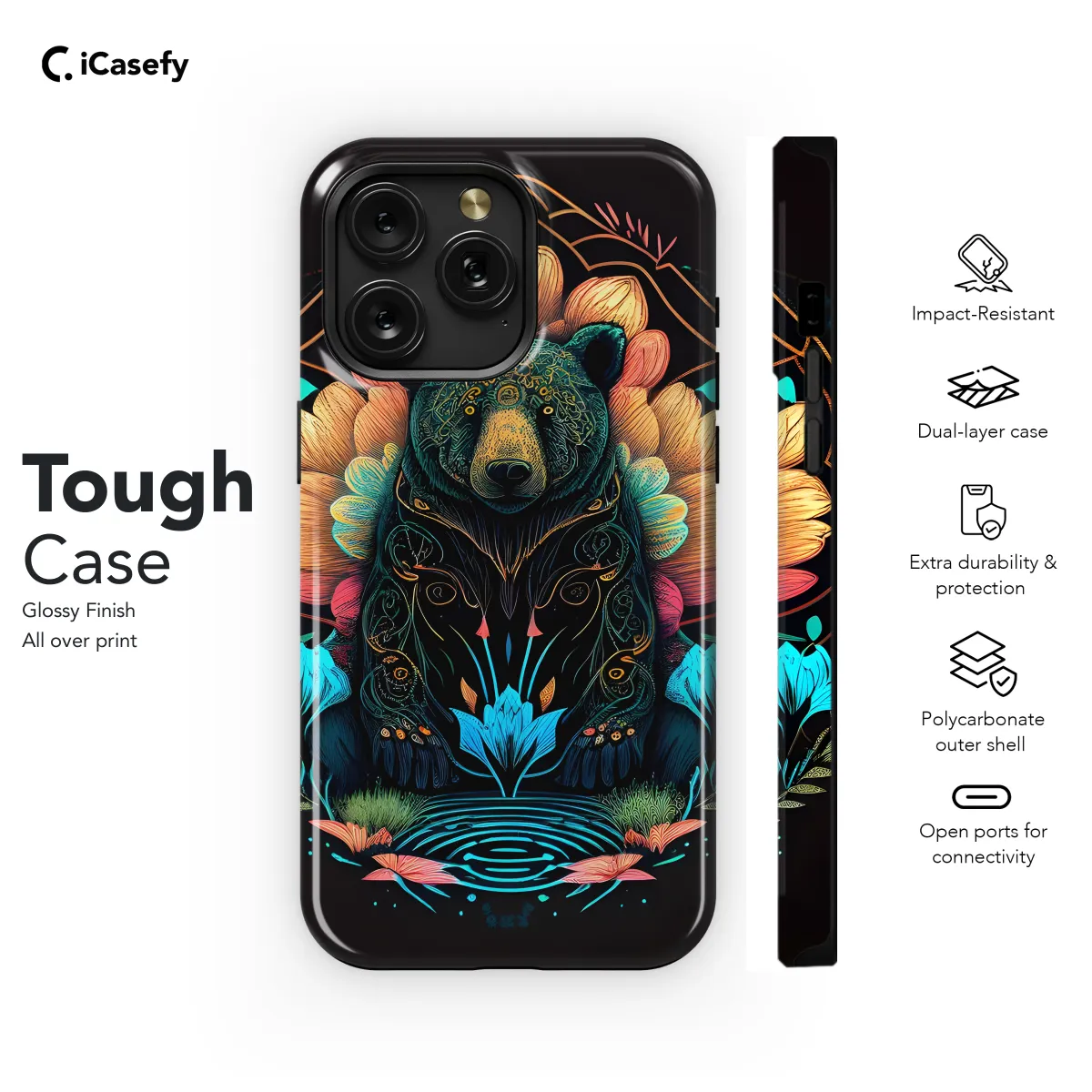 Protect your precious phone with our stunning Black Bear Mosaic case! This eye-catching cover features an intricate mosaic design inspired by the majestic black bear. Its vibrant colors and geometric patterns will add a touch of wildlife to your everyday style. Crafted from durable and lightweight materials, our case provides excellent protection against scratches, drops, and bumps. Its precision cutouts ensure easy access to all ports, buttons, and features. Available for a wide range of iPhone, Samsung, and Pixel models, our Black Bear Mosaic case is the perfect way to express your love for nature and keep your phone secure.