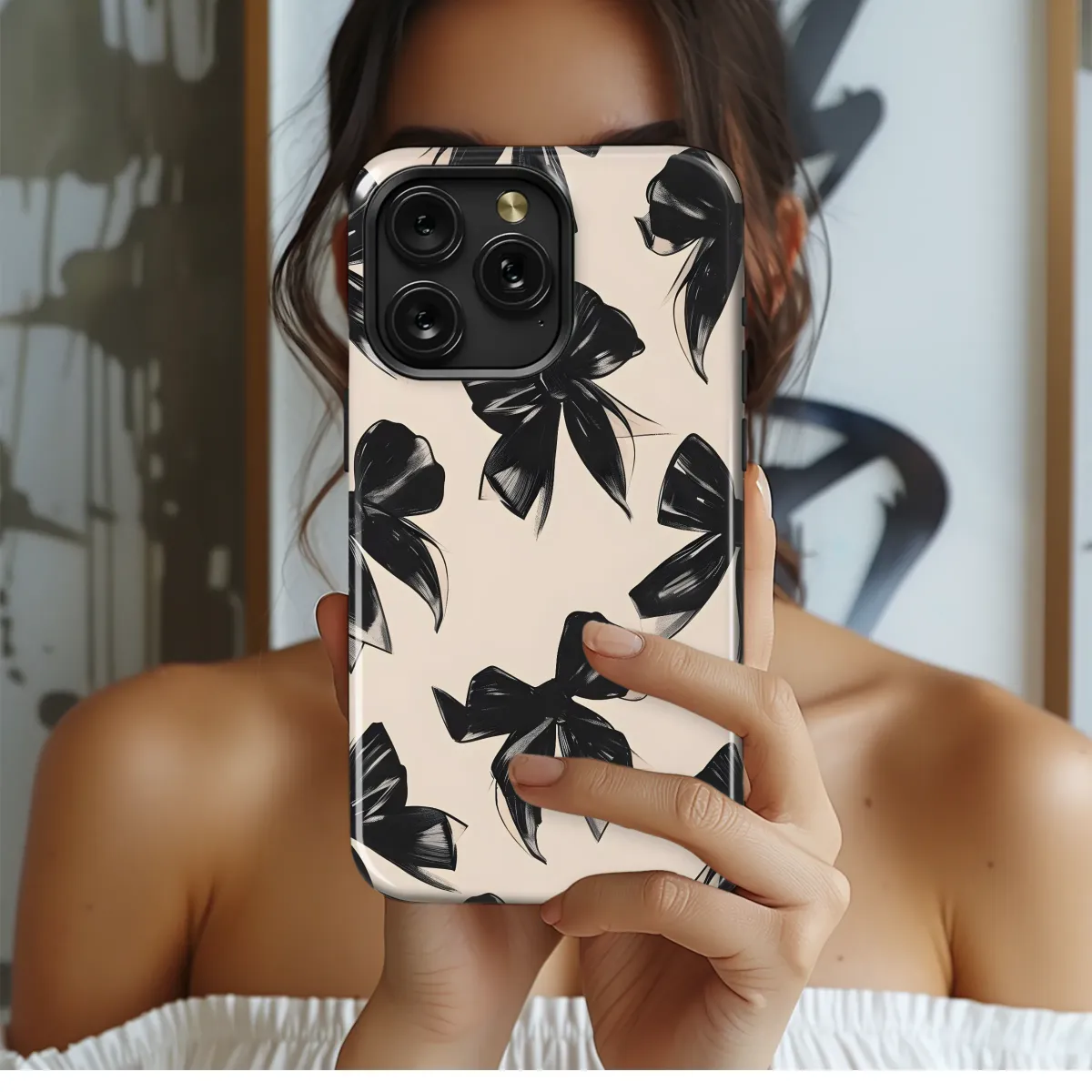 Elevate your style with this chic and sophisticated design featuring a captivating pattern of black bows on a creamy background. This elegant design is perfect for adding a touch of timeless glamour to your everyday essentials. The bold black bows are rendered with a painterly flair, creating a textured and visually engaging aesthetic. This print offers a subtle yet striking contrast, making it a versatile choice for any occasion. Its high-quality printing ensures vibrant colors and sharp details that will last. This eye-catching design is sure to turn heads and add a unique flair to your personal style, making it a perfect gift or a treat for yourself. The timeless elegance of this design makes it a versatile addition to any wardrobe, blending seamlessly with various styles and personalities. Experience the luxury of a meticulously crafted design, printed with precision and care, promising exceptional quality and lasting style. Show off your unique taste and sophistication with this beautiful and unforgettable accessory.