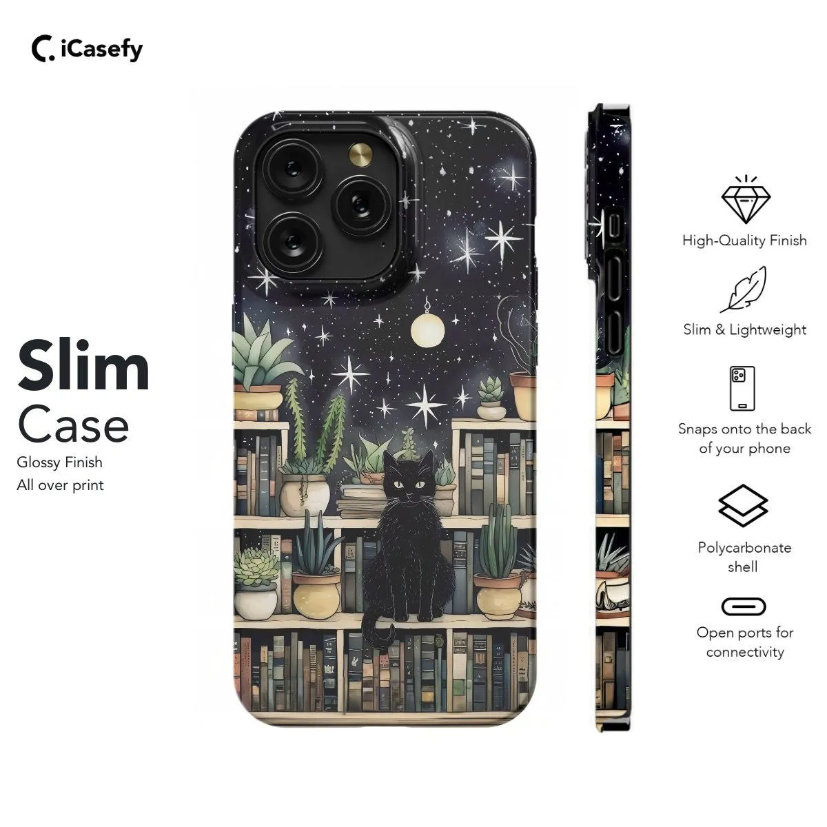 Capture the mystical allure of literature and celestial charm with this captivating phone case featuring a black cat and celestial elements. Adorned with the image of a mysterious feline companion alongside celestial motifs such as stars and moons, this accessory evokes a sense of enchantment and magic. Carry a touch of cosmic whimsy with you wherever you go, letting your device become a portal to the realms of both imagination and the cosmos with this delightful and celestial case.