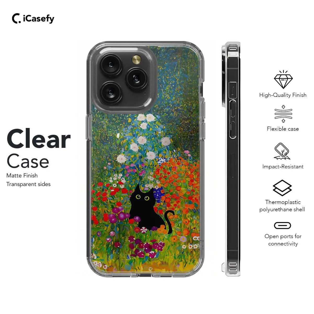 Experience artistic harmony with our Black Cat Flower Klimt phone case. This captivating design merges the mystique of black cats with the elegance of Gustav Klimt's floral masterpieces, creating a unique fusion of beauty and grace. Crafted for art enthusiasts, it offers both style and protection, featuring precise cutouts for easy access to ports. Let this accessory be a celebration of artistry and the enchanting allure of nature.