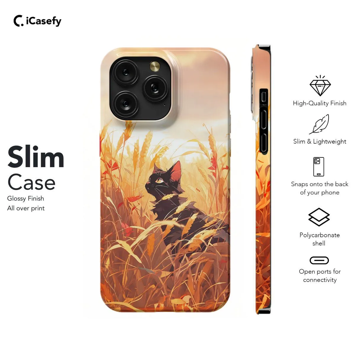 Immerse yourself in the tranquility of nature with our Black Cat in Wheat phone case. This serene design features a majestic black cat nestled amidst golden wheat fields, evoking the peacefulness of the countryside. Crafted for both style and protection, it offers precise cutouts for easy access to ports and buttons. Let this accessory be a reminder of the beauty found in simplicity and the calming presence of feline companionship.