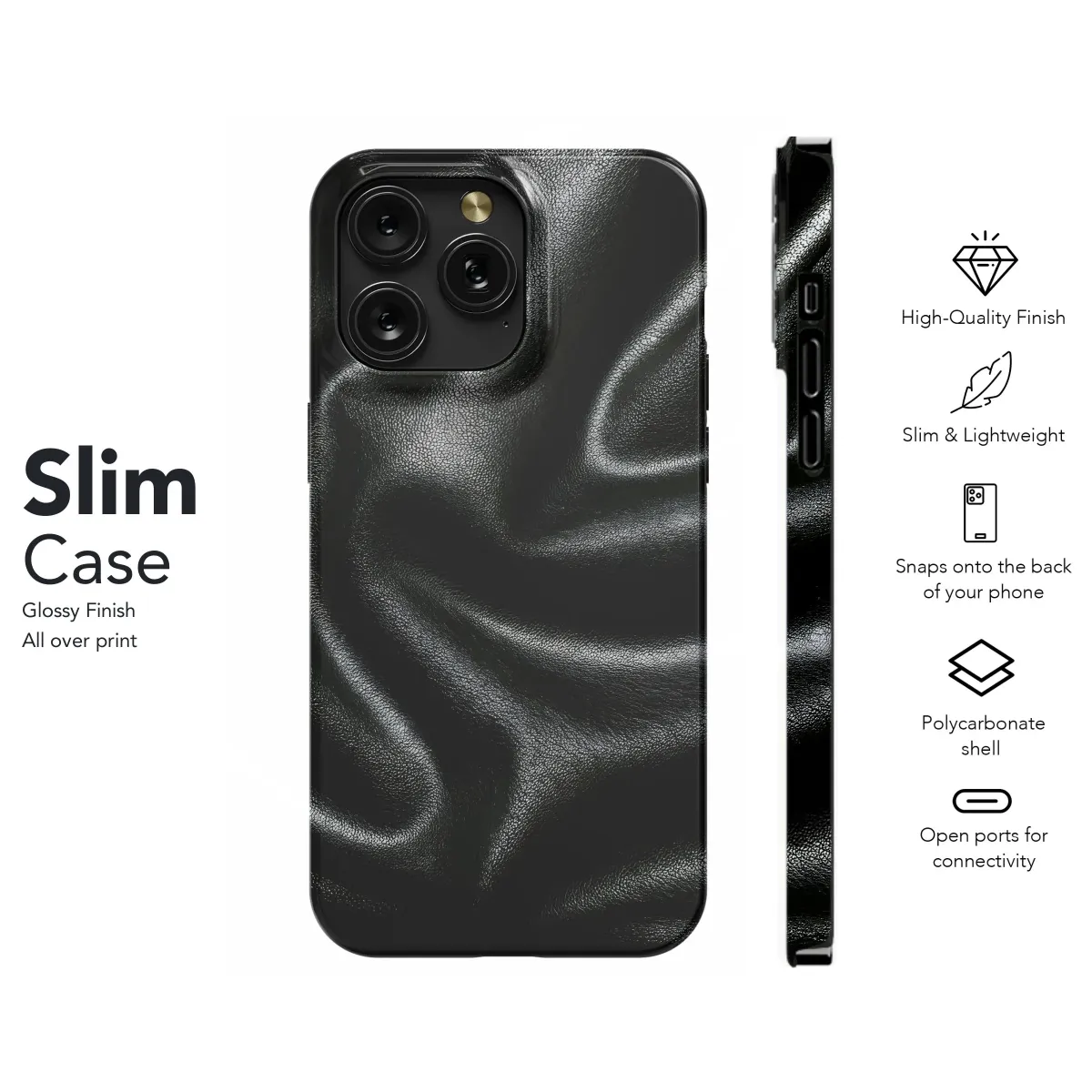 Sleek and sophisticated, this black leather texture phone case adds a touch of luxury to your iPhone, Samsung, or Pixel. Premium protection with a stylish grip. Available for models 4849.