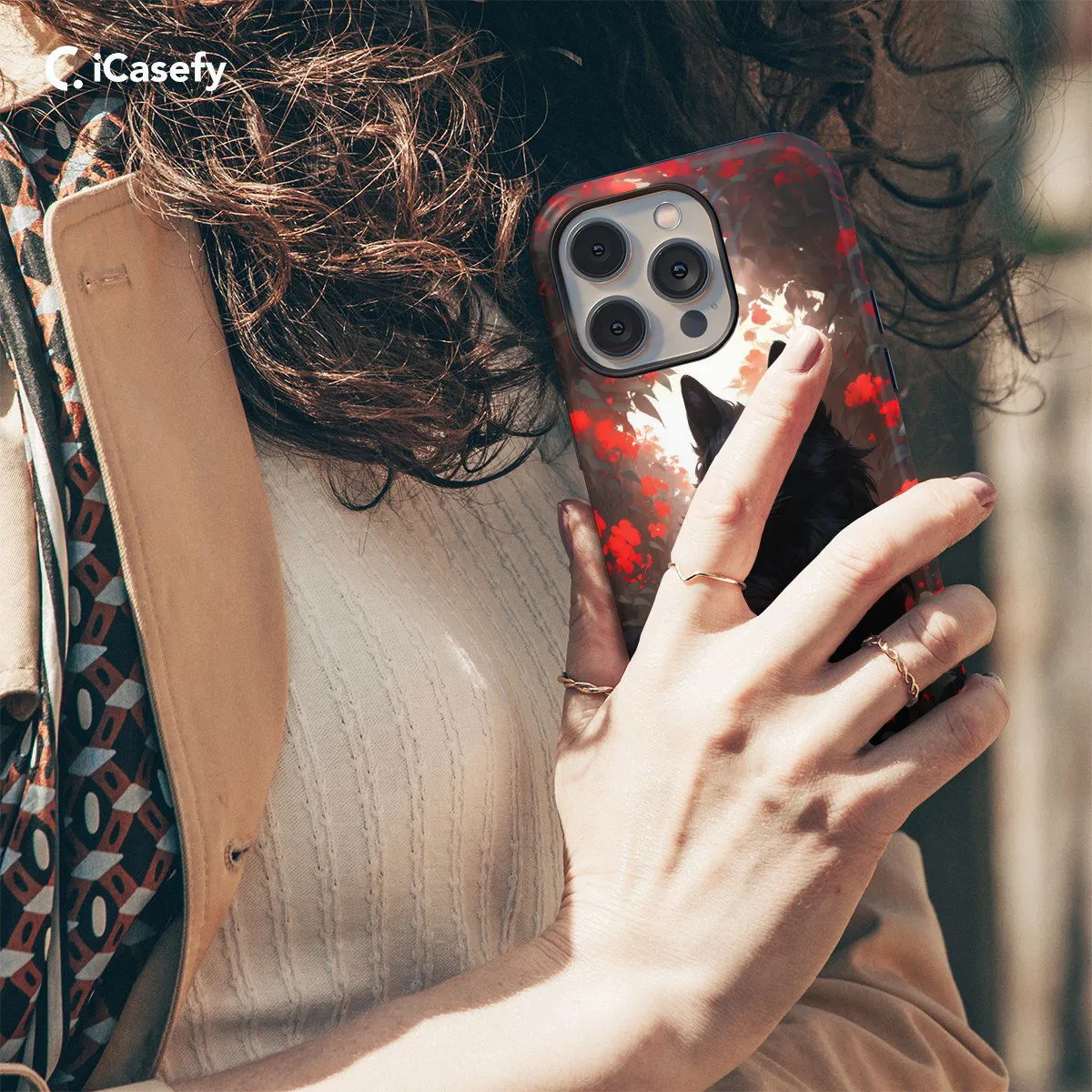 Immerse yourself in the mystical allure of nature with our Red Floral Black Wolf phone case. This captivating design features a majestic black wolf surrounded by vibrant red florals, portraying a striking contrast of wilderness and elegance. Crafted for both style and protection, it offers precise cutouts for easy access to ports and buttons. Let this accessory be a tribute to the raw beauty and grace of the natural world.