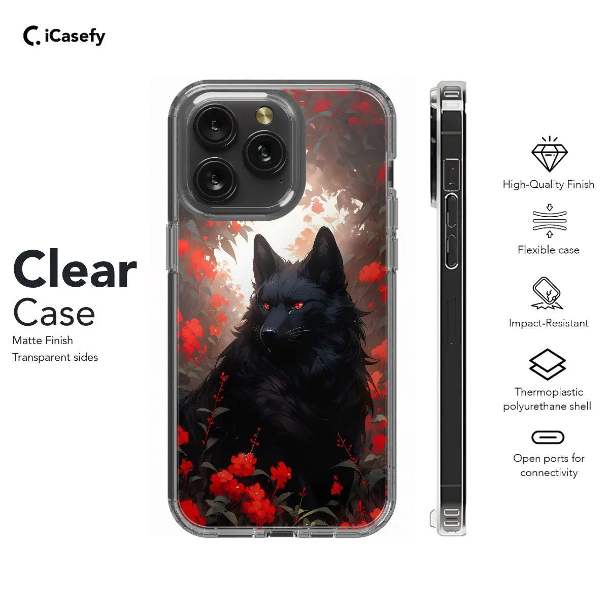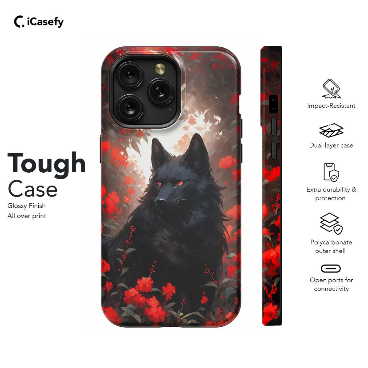 Immerse yourself in the mystical allure of nature with our Red Floral Black Wolf phone case. This captivating design features a majestic black wolf surrounded by vibrant red florals, portraying a striking contrast of wilderness and elegance. Crafted for both style and protection, it offers precise cutouts for easy access to ports and buttons. Let this accessory be a tribute to the raw beauty and grace of the natural world.