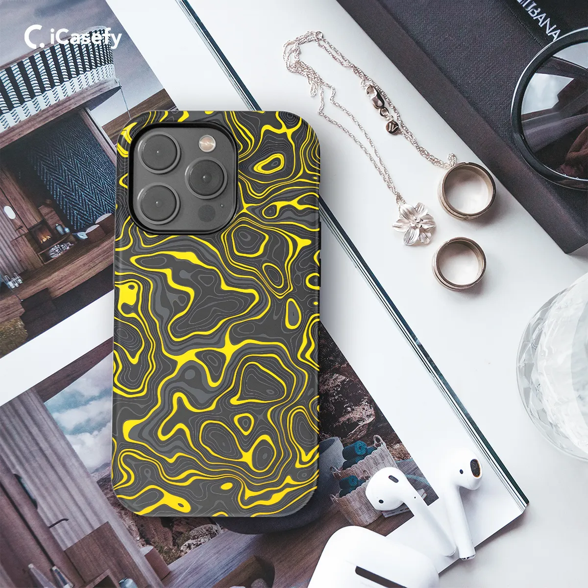 **[Product Name]** Elevate your phone's style with this sleek topographic map phone case. Featuring a striking black and yellow design, it depicts intricate terrain contours and elevations for a captivating outdoorsy touch. **Features:** * Durable polycarbonate construction protects your phone from bumps and drops * Precise cutouts ensure easy access to all buttons and ports * Available for various iPhone, Samsung, and Pixel models * Slim profile maintains a sleek look without adding bulk * Non-slip surface provides extra grip