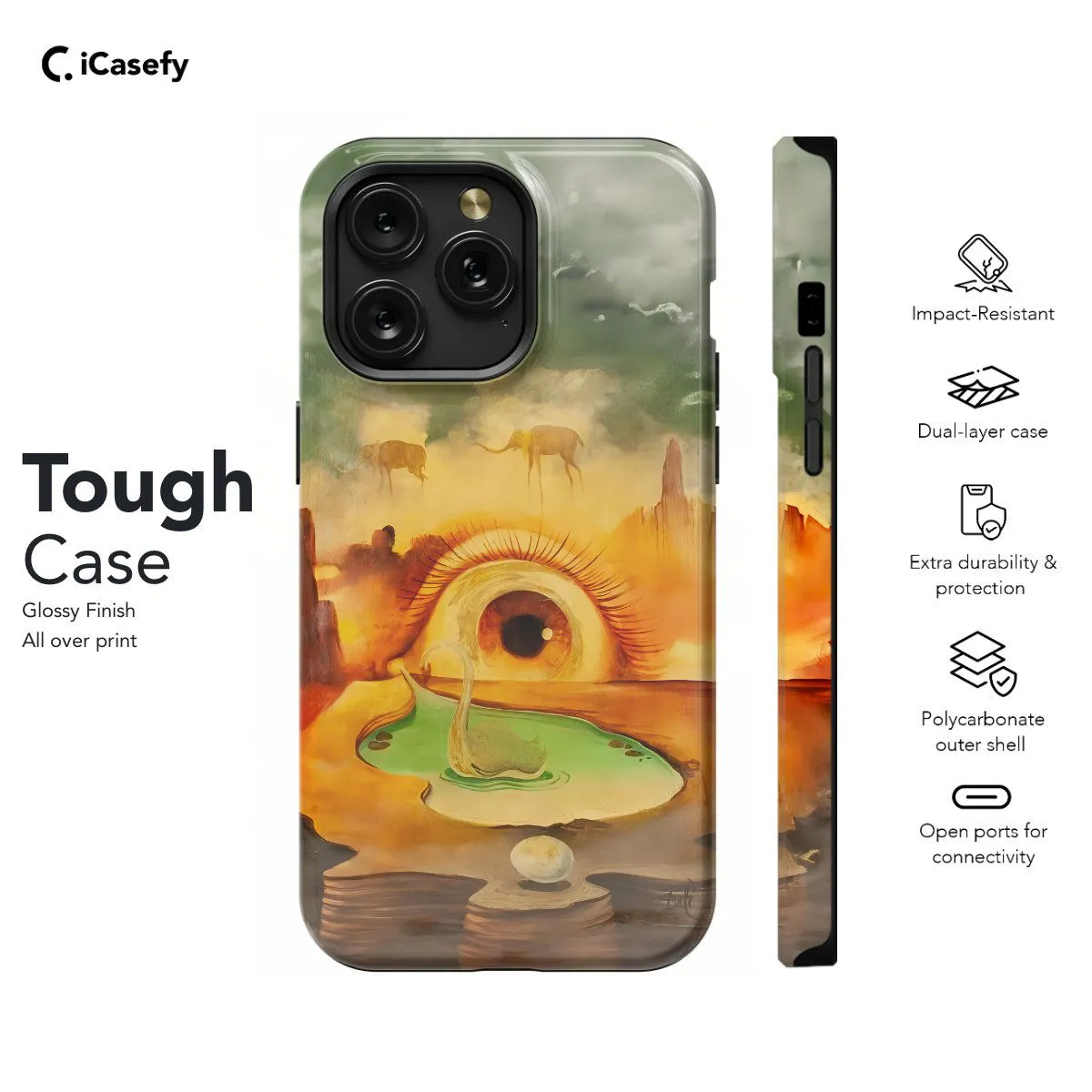 Enter the surreal and provocative realm of Salvador Dali with a phone case featuring his iconic "Bleeding Eye" artwork. This striking design captivates with its blend of surrealism and symbolism, inviting contemplation and intrigue. Carry a piece of artistic mastery with you wherever you go, letting your device become a canvas for creativity and thought-provoking expression with this captivating Dali-inspired case.