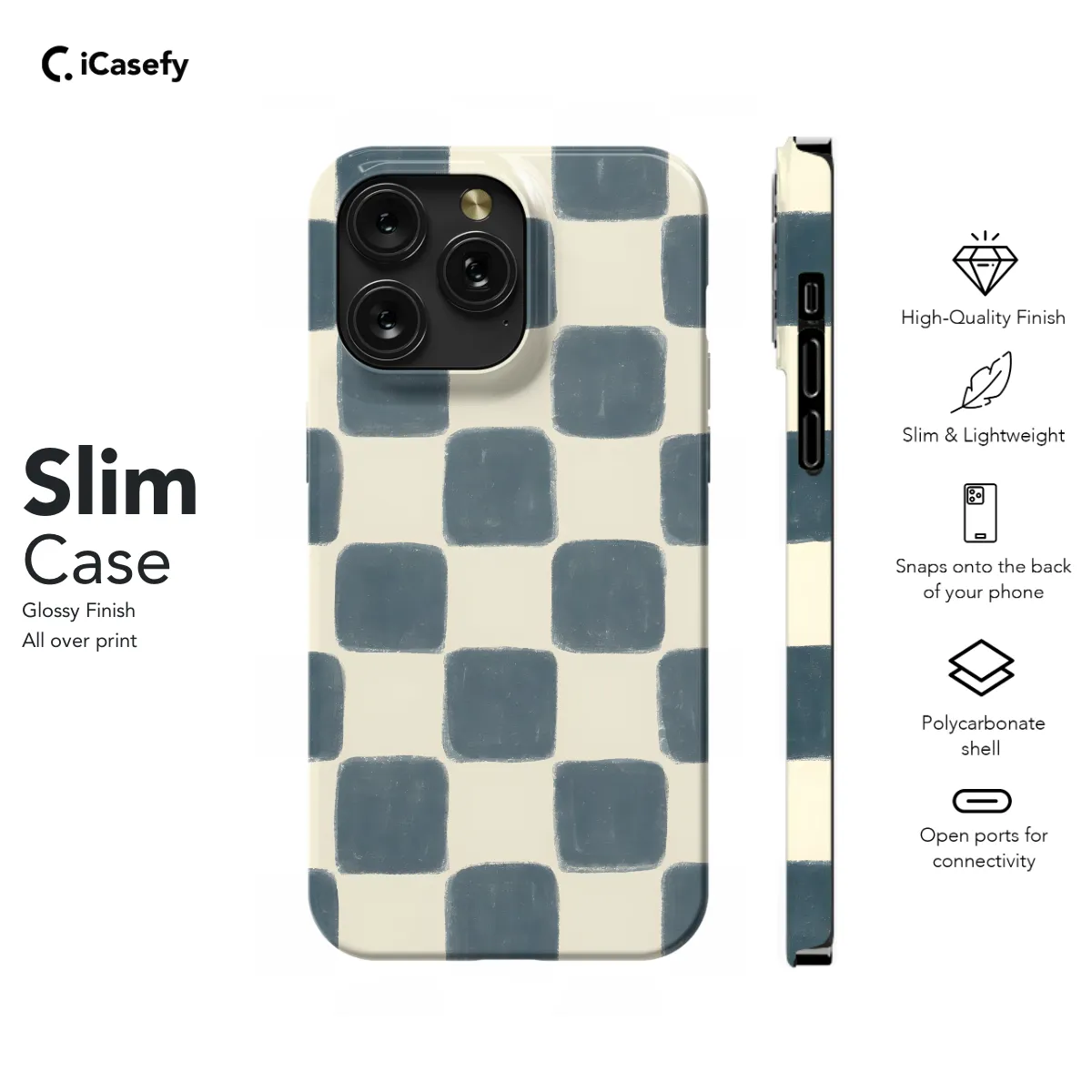 Protect your phone in style with our Blue Checkered Phone Case! This vibrant and sophisticated case is crafted from durable materials to keep your device safe from bumps and scratches. Its sleek design features a classic checkered pattern, adding a touch of elegance to your phone. Compatible with iPhone, Samsung, Pixel, and more, this case is a perfect fit for a wide range of devices. Enhance your phone's look and shield it from damage with our Blue Checkered Phone Case!