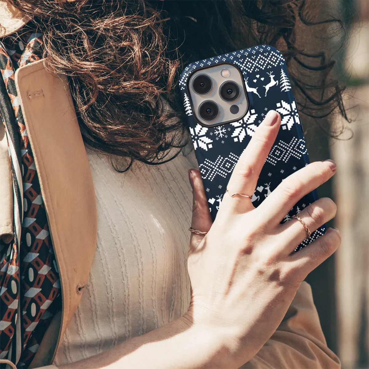 Protect your phone with this stylish Christmas-themed phone case, featuring an intricate ethnic pattern in shades of blue. The durable construction ensures your phone stays safe from bumps and scratches, while the slim profile allows for easy handling. Compatible with iPhone, Samsung, and Pixel models, this case is the perfect way to add a festive touch to your phone this holiday season.