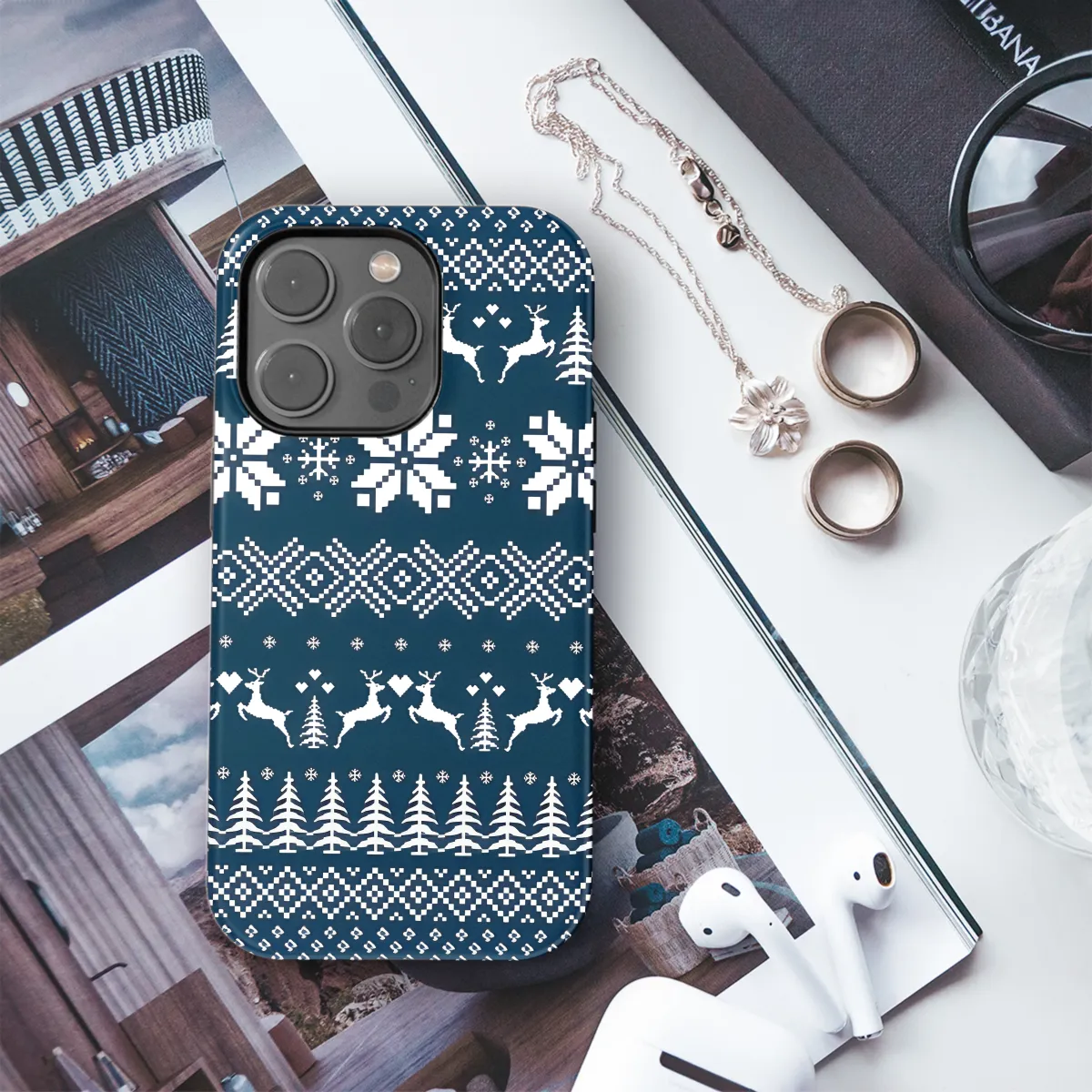 Protect your phone with this stylish Christmas-themed phone case, featuring an intricate ethnic pattern in shades of blue. The durable construction ensures your phone stays safe from bumps and scratches, while the slim profile allows for easy handling. Compatible with iPhone, Samsung, and Pixel models, this case is the perfect way to add a festive touch to your phone this holiday season.