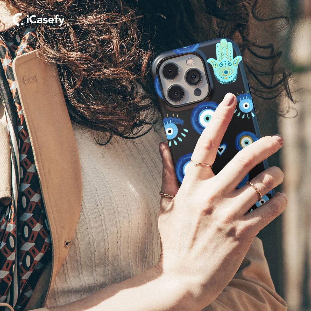 Ward off negativity and channel protection with a striking blue evil eye phone case. Adorned with the iconic symbol of the evil eye, believed to safeguard against malevolent energies, this accessory offers both style and spiritual significance. Carry a touch of ancient mysticism with you wherever you go, letting your device become a talisman of protection and positivity with this captivating and meaningful case.