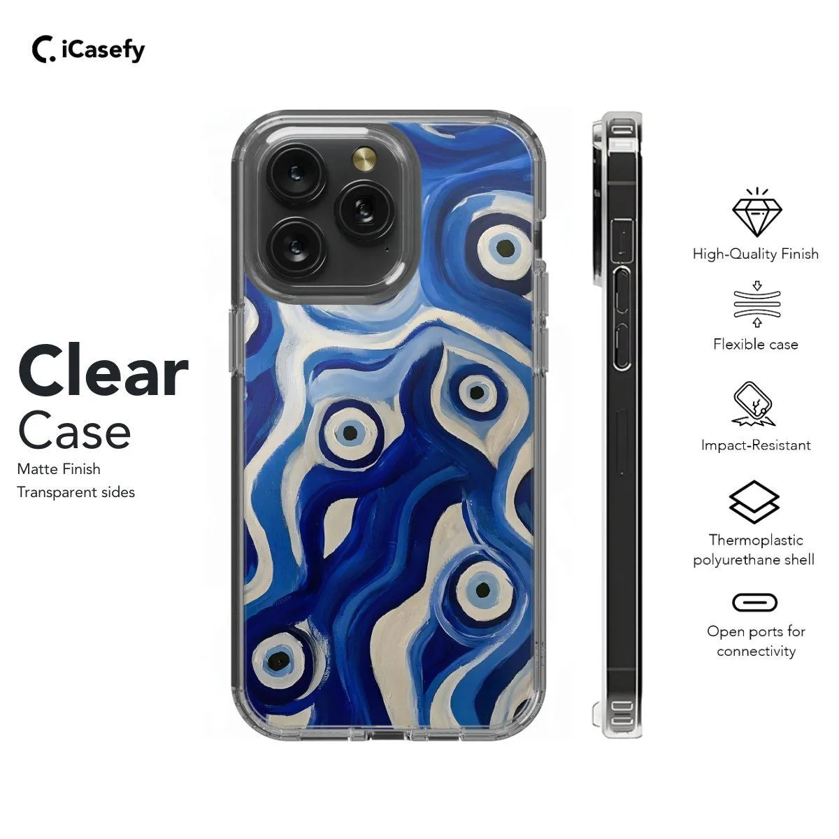 Ward off negativity and channel protection with a striking blue evil eye phone case. Adorned with the iconic symbol of the evil eye, believed to safeguard against malevolent energies, this accessory offers both style and spiritual significance. Carry a touch of ancient mysticism with you wherever you go, letting your device become a talisman of protection and positivity with this captivating and meaningful case.